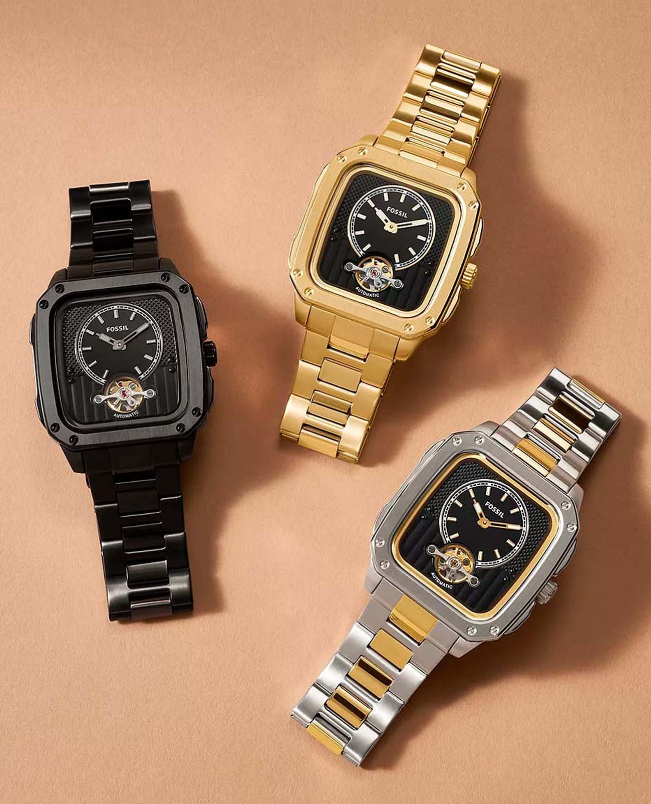Мужские американские механические часы с автоподзаводом и с минеральным стекломМинеральное стеклоМинеральное стекло представляет собой искусственно выращенный минерал кварца. Такое стекло отличается особой устойчивостью к повреждениям и царапинам. Уступает по некоторым качествам сапфировому стеклу. Fossil Inscription ME3239, кварцевый механизм с высокой точностью. Прямоугольный корпус часов изготовлен из нержавеющей стали с IP-покрытиемIP-покрытиеМетод ионного напыления. Демонстрирует повышенную устойчивость к истиранию, окислению и химическим веществам. Под воздействием высокого давления и температуры около 1500°C молекулы металла надёжно соединяются с частицами корпуса часов.. БезельБезельВнешний ободок, закрепляющий стекло. В спортивных часах так называется поворотное кольцо с делениями на циферблате, выполняет роль таймера – замеряет отрезки времени на шкале. Неподвижный безель – элемент декора. Однонаправленно вращающийся безель на дайверских часах позволяет фиксировать моменты погружения и выныривания на поверхность. дополнен стильными винтами. Прозрачное окошко на текстурированном циферблате позволяет наблюдать за мерным ходом часового механизма. Метки в виде штрихов. Метки и стрелки с люминесцентным покрытиемЛюминесцентное покрытиеПозволяет считывать показания времени в темноте. Производители наносят на стрелки, часовые индексы, безель или поверхность циферблата светонакопительный состав, дающий холодное свечение.. Рифленая заводная головка с защитой. Класс водозащиты: 50 метров, позволит защитить корпус от случайных брызг или капель дождя. Стальной браслет с IP-покрытиемIP-покрытиеМетод ионного напыления. Демонстрирует повышенную устойчивость к истиранию, окислению и химическим веществам. Под воздействием высокого давления и температуры около 1500°C молекулы металла надёжно соединяются с частицами корпуса часов. на раскладной застёжкеРаскладная застёжкаТакой тип застёжки используется только на браслетах из металла. Она никогда не раскрывается полностью, происходит разделение на 2 и более частей. Раскладывающая застёжка снизит вероятность потери часов к минимуму..