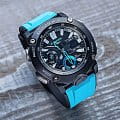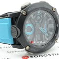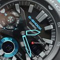 Массивный тёмный аксессуар дополнен голубыми цветовыми акцентами в виде деталей на циферблате и полимерного браслета. Наручные часы в спортивном стиле имеют противоударный корпусУдаропрочный корпусМеханизм заключён в корпус, выполненный из современных материалов, устойчивых к ударам, механическим повреждениям и падению с высоты: инновационный пластик, карбон, нержавеющая сталь, титан., выдерживающий большие нагрузки, он сделан по технологии Carbon Core GuardCarbon Core Guard Новейшая структура корпуса, разработанная Casio. Полиуретановая пластина дополнительно усилена карбоновыми вставками, что придаёт специальную защиту от механических повреждений. Карбон отличается лёгкостью и прочностью.. Кварцевый механизм получает питание от батарейки, срок её службы - 3 года. Двойная подсветка циферблата и дисплеев. Минеральное стекло. Водостойкость 20 бар. Двойная задняя крышка: первая из стали, вторая из пластика. Функционал: таймер, будильник, хронографХронографФункция позволяет измерять отрезки времени с особой точностью: часы, минуты, секунды. Верным признаком хронографа является наличие на циферблате 3 дополнительных окошек-счётчиков., секундомер, автоматический календарь, мировое времяМировое время Полезное часовое усложнение, отображающее время в основных городах и известных областях по всему миру, оно связано с часовыми поясами, удобно для путешественников и бизнесменов. . Габариты: 48,7 x 51,2 x 14,1 мм.