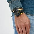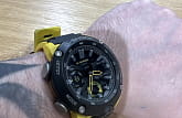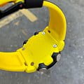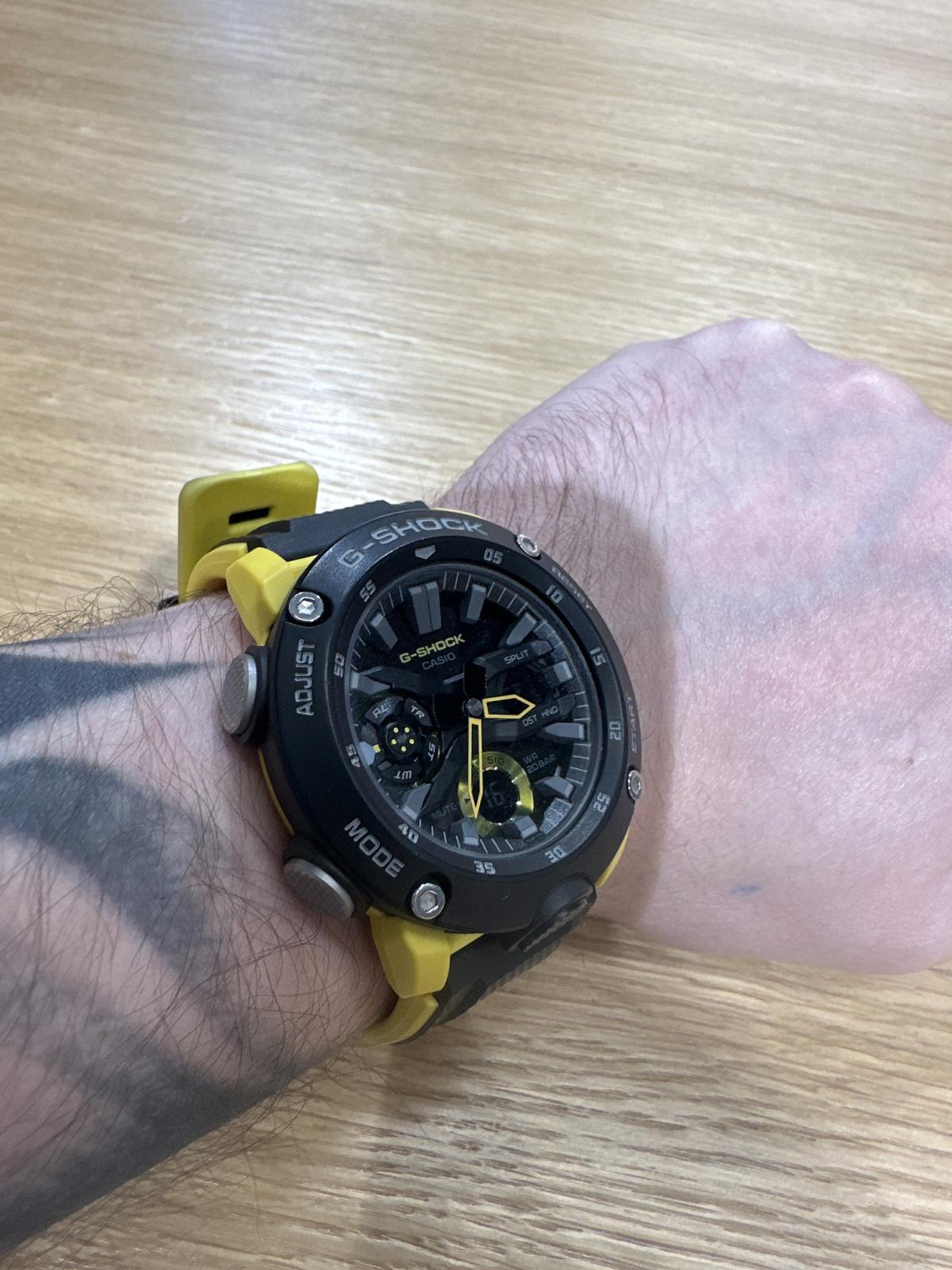 Наручные часы в чёрно-желтом исполнении реализуют технологию Carbon Core GuardCarbon Core Guard Новейшая структура корпуса, разработанная Casio. Полиуретановая пластина дополнительно усилена карбоновыми вставками, что придаёт специальную защиту от механических повреждений. Карбон отличается лёгкостью и прочностью., карбон послужил материалом для изготовления противоударного корпусаУдаропрочный корпусМеханизм заключён в корпус, выполненный из современных материалов, устойчивых к ударам, механическим повреждениям и падению с высоты: инновационный пластик, карбон, нержавеющая сталь, титан.. Это позволило добиться повышенной устойчивости к ударам и падению без утяжеления общей конструкции. БезельБезельВнешний ободок, закрепляющий стекло. В спортивных часах так называется поворотное кольцо с делениями на циферблате, выполняет роль таймера – замеряет отрезки времени на шкале. Неподвижный безель – элемент декора. Однонаправленно вращающийся безель на дайверских часах позволяет фиксировать моменты погружения и выныривания на поверхность. оставлен полимерным. Японский кварцевый механизм работает за счёт батарейки, срок службы которой - 3 года. Закаленное минеральное стекло. Двойная задняя крышка, стальная и пластиковая. Светодиодная подсветкаСветодиодная подсветкаСветодиодная или LED-подсветка обеспечивает появление яркого холодного свечения за счёт LED-элементов - маленьких лампочек. Они потребляют минимальное количество энергии, чаще всего можно встретить 1 светодиод, в нижней части циферблата.. Водонепроницаемость 200 метров. Возможность быстрой и лёгкой замены полимерного ремешка. ХронографХронографФункция позволяет измерять отрезки времени с особой точностью: часы, минуты, секунды. Верным признаком хронографа является наличие на циферблате 3 дополнительных окошек-счётчиков., автоматический календарь, мировое времяМировое время Полезное часовое усложнение, отображающее время в основных городах и известных областях по всему миру, оно связано с часовыми поясами, удобно для путешественников и бизнесменов. , будильник, секундомер, таймер с автоповтором. Габариты: 48,7 x 51,2 x 14,1 мм.