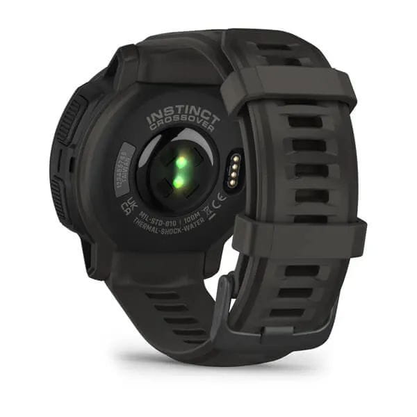 Умные многофункциональные мужские часы Garmin Instinct Crossover Solar 010-02730-01, электронный механизм с высокой точностью. Класс водозащиты: 100 метров, позволит плавать, нырять и заниматься другими водными видами спорта. Материал корпуса: Фиброармированный полимер Ударопрочный корпусУдаропрочный корпусМеханизм заключён в корпус, выполненный из современных материалов, устойчивых к ударам, механическим повреждениям и падению с высоты: инновационный пластик, карбон, нержавеющая сталь, титан.. Минеральное стеклоМинеральное стеклоМинеральное стекло представляет собой искусственно выращенный минерал кварца. Такое стекло отличается особой устойчивостью к повреждениям и царапинам. Уступает по некоторым качествам сапфировому стеклу. которое было химически усиленно. Экран с светодиодной подсветкойСветодиодная подсветкаСветодиодная или LED-подсветка обеспечивает появление яркого холодного свечения за счёт LED-элементов - маленьких лампочек. Они потребляют минимальное количество энергии, чаще всего можно встретить 1 светодиод, в нижней части циферблата..