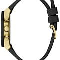 Стальной корпус с IP-покрытием. Время отображается в 12- и 24-часовом форматах. Отсчет данных ведут три элегантные стрелки. Миниатюрные круглые окошечки с текущей датой и днем недели гармонично дополняют дизайн аксессуара. Нежный ремешок из силикона. Вставлено минеральное стекло с закалкой. Водонепроницаемость составляют 50 WR.