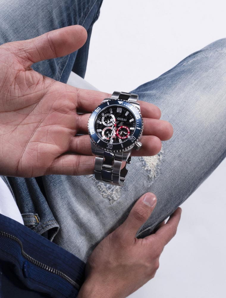 Кварцевый механизм с высокой точностью. Минеральное стеклоМинеральное стеклоМинеральное стекло представляет собой искусственно выращенный минерал кварца. Такое стекло отличается особой устойчивостью к повреждениям и царапинам. Уступает по некоторым качествам сапфировому стеклу. устойчивое к появлению царапин, обладающее высокой прозрачностью. Стрелки с люминесцентным покрытиемЛюминесцентное покрытиеПозволяет считывать показания времени в темноте. Производители наносят на стрелки, часовые индексы, безель или поверхность циферблата светонакопительный состав, дающий холодное свечение.. Класс водозащиты: 50 метров, позволит защитить корпус от случайных брызг или капель дождя. Корпус часов изготовлен из нержавеющей стали. Браслет с раскладной застёжкойРаскладная застёжкаТакой тип застёжки используется только на браслетах из металла. Она никогда не раскрывается полностью, происходит разделение на 2 и более частей. Раскладывающая застёжка снизит вероятность потери часов к минимуму..
