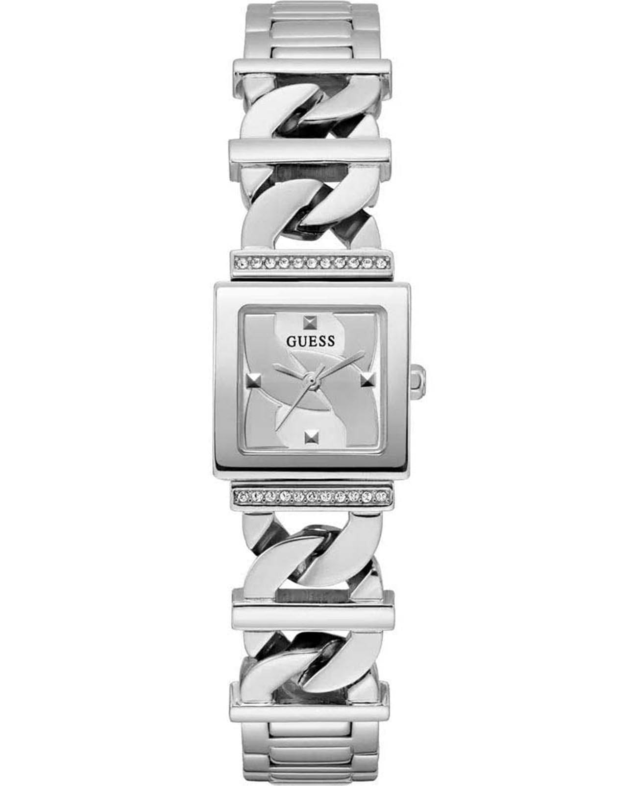 Женские наручные часы с минеральным стекломМинеральное стеклоМинеральное стекло представляет собой искусственно выращенный минерал кварца. Такое стекло отличается особой устойчивостью к повреждениям и царапинам. Уступает по некоторым качествам сапфировому стеклу. Guess Runaway GW0603L1, кварцевый механизм с высокой точностью. Класс водозащиты: 30 метров, позволит защитить корпус от случайных брызг или капель дождя. Корпус часов изготовлен из стали. Стальной браслет на ювелирной застежке инкрустирован кристаллами.