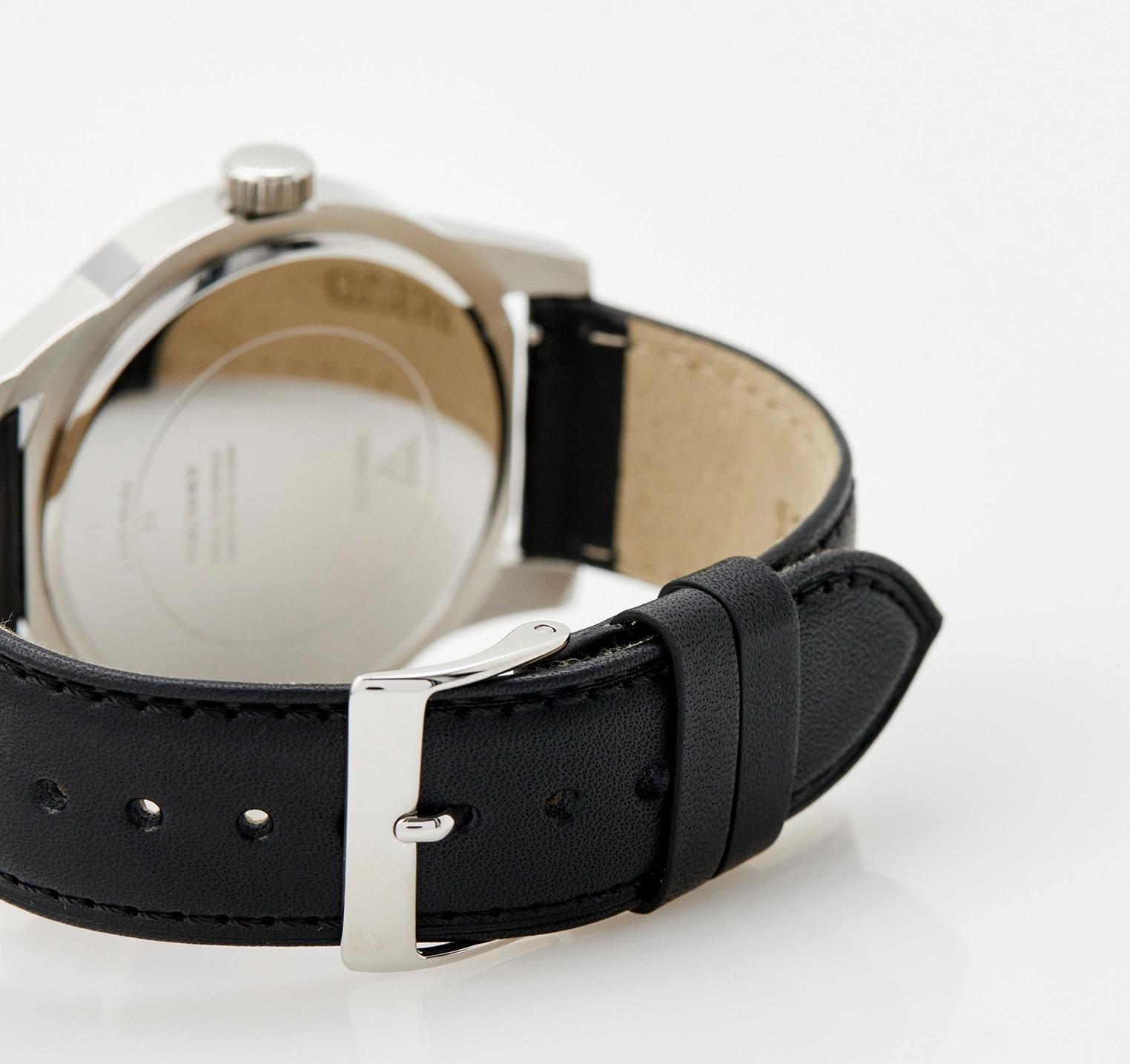 Мужские наручные часы с минеральным стекломМинеральное стеклоМинеральное стекло представляет собой искусственно выращенный минерал кварца. Такое стекло отличается особой устойчивостью к повреждениям и царапинам. Уступает по некоторым качествам сапфировому стеклу. Guess Crescent GW0630G1, кварцевый механизм с высокой точностью. Класс водозащиты: 50 метров, позволит защитить корпус от случайных брызг или капель дождя. Корпус часов изготовлен из стали. Кожаный ремешок на стандартной застёжке. Стрелки и метки с люминесцентным покрытиемЛюминесцентное покрытиеПозволяет считывать показания времени в темноте. Производители наносят на стрелки, часовые индексы, безель или поверхность циферблата светонакопительный состав, дающий холодное свечение..2 ремешка комплекте.