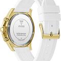 Женские наручные часы Guess Dress GW0771L2 с минеральным стекломМинеральное стеклоМинеральное стекло представляет собой искусственно выращенный минерал кварца. Такое стекло отличается особой устойчивостью к повреждениям и царапинам. Уступает по некоторым качествам сапфировому стеклу., кварцевый механизм с высокой точностью. Корпус часов изготовлен из стали с PVD-покрытиемPVDУльтратонкое покрытие наносится в технике вакуумного напыления, сочетает в себе нитрид титана особой прочности со слоем золота или оксида хрома. Несёт в себе декоративную или защитную функцию.. БезельБезельВнешний ободок, закрепляющий стекло. В спортивных часах так называется поворотное кольцо с делениями на циферблате, выполняет роль таймера – замеряет отрезки времени на шкале. Неподвижный безель – элемент декора. Однонаправленно вращающийся безель на дайверских часах позволяет фиксировать моменты погружения и выныривания на поверхность. с PVD-покрытиемPVDУльтратонкое покрытие наносится в технике вакуумного напыления, сочетает в себе нитрид титана особой прочности со слоем золота или оксида хрома. Несёт в себе декоративную или защитную функцию. украшен кристаллами. Стрелки с люминесцентным покрытиемЛюминесцентное покрытиеПозволяет считывать показания времени в темноте. Производители наносят на стрелки, часовые индексы, безель или поверхность циферблата светонакопительный состав, дающий холодное свечение.. Класс водозащиты: 50 метров, позволит защитить корпус от случайных брызг или капель дождя. Силиконовый ремешок с простой ремешковой застежкой.