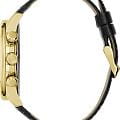 Стильные и функциональные часы Guess GW0901G4 оснащены кварцевым механизмом, что обеспечивает точность и надежность в использовании. Корпус выполнен из прочной стали с золотистым PVD-покрытиемPVDУльтратонкое покрытие наносится в технике вакуумного напыления, сочетает в себе нитрид титана особой прочности со слоем золота или оксида хрома. Несёт в себе декоративную или защитную функцию., придающей изделиям утонченный и современный вид. Циферблат украшен метками в виде штрихов и римской цифрой XII, обеспечивающими легкое считывание времени. Время отображается в двух форматах — 12-ти и 24-х часовом, что удобно для тех, кто привык к разным системам времени. Дополнительные циферблаты показывают дату и день недели, что позволяет всегда быть в курсе текущей даты без необходимости использования других устройств. Часы также оснащены тахиметромТахиметрРазмеченная шкала, располагается на ободке или безеле часов. Тахиметр позволяет рассчитать скорость на определённом участке пути, расстояние измеряется в километрах или милях., что добавляет им функциональности и может быть полезно для измерения скорости. Люминесцентное покрытиеЛюминесцентное покрытиеПозволяет считывать показания времени в темноте. Производители наносят на стрелки, часовые индексы, безель или поверхность циферблата светонакопительный состав, дающий холодное свечение. на стрелках и метках обеспечивает отличную видимость в темноте. Минеральное стеклоМинеральное стеклоМинеральное стекло представляет собой искусственно выращенный минерал кварца. Такое стекло отличается особой устойчивостью к повреждениям и царапинам. Уступает по некоторым качествам сапфировому стеклу. защищает циферблат от царапин и повреждений, а водозащита 50WR позволяет не волноваться о случайных контактах с водой, например, во время дождя. Кожаный черный ремешок с классической застежкой обеспечивает надежную фиксацию часов на руке и комфорт в ношении. Рифленая заводная головка с защитой добавляет изысканности и одновременно защищает механизм от повреждений. Эти часы идеально подойдут для тех, кто ценит стиль, функциональность и качество в одном аксессуаре.