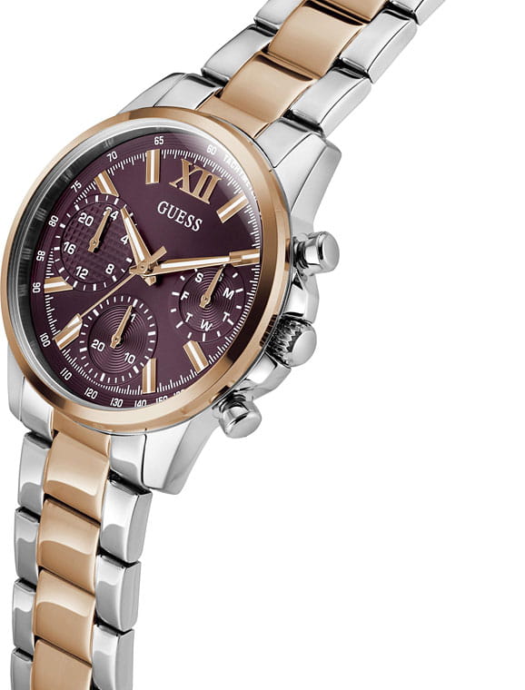 Элегантные женские наручные часы Guess GW0933L5 сочетают в себе стиль и функциональность. Эти часы оснащены точным кварцевым механизмом, что гарантирует надежность и долговечность. Корпус часов выполнен из прочной нержавеющей стали серебристого цвета, диаметром 36 мм. Неподвижный безельБезельВнешний ободок, закрепляющий стекло. В спортивных часах так называется поворотное кольцо с делениями на циферблате, выполняет роль таймера – замеряет отрезки времени на шкале. Неподвижный безель – элемент декора. Однонаправленно вращающийся безель на дайверских часах позволяет фиксировать моменты погружения и выныривания на поверхность. с PVD-покрытиемPVDУльтратонкое покрытие наносится в технике вакуумного напыления, сочетает в себе нитрид титана особой прочности со слоем золота или оксида хрома. Несёт в себе декоративную или защитную функцию. цвета розового золота придает роскошный вид. Циферблат Циферблат дополнен тахиметромТахиметрРазмеченная шкала, располагается на ободке или безеле часов. Тахиметр позволяет рассчитать скорость на определённом участке пути, расстояние измеряется в километрах или милях.. Часы оснащены стальным браслетом с частичным PVD-покрытиемPVDУльтратонкое покрытие наносится в технике вакуумного напыления, сочетает в себе нитрид титана особой прочности со слоем золота или оксида хрома. Несёт в себе декоративную или защитную функцию. на раскладной застёжкеРаскладная застёжкаТакой тип застёжки используется только на браслетах из металла. Она никогда не раскрывается полностью, происходит разделение на 2 и более частей. Раскладывающая застёжка снизит вероятность потери часов к минимуму., которая обеспечивает комфортное прилегание к запястью и надежную фиксацию. Минеральное стеклоМинеральное стеклоМинеральное стекло представляет собой искусственно выращенный минерал кварца. Такое стекло отличается особой устойчивостью к повреждениям и царапинам. Уступает по некоторым качествам сапфировому стеклу. защищает циферблат от царапин и повреждений, сохраняя его безупречный вид. 12-ти и 24-х часовой формат. Рифленая заводная головка с защитой. Водозащита 30WR гарантирует защиту от случайных брызг и дождя, что делает эти часы практичным аксессуаром для повседневной жизни. Люминесцентное покрытиеЛюминесцентное покрытиеПозволяет считывать показания времени в темноте. Производители наносят на стрелки, часовые индексы, безель или поверхность циферблата светонакопительный состав, дающий холодное свечение. на стрелках и метках обеспечивает отличную видимость в темноте. Guess – это не просто аксессуар, это заявление о вашем безупречном вкусе и стремлении к совершенству.