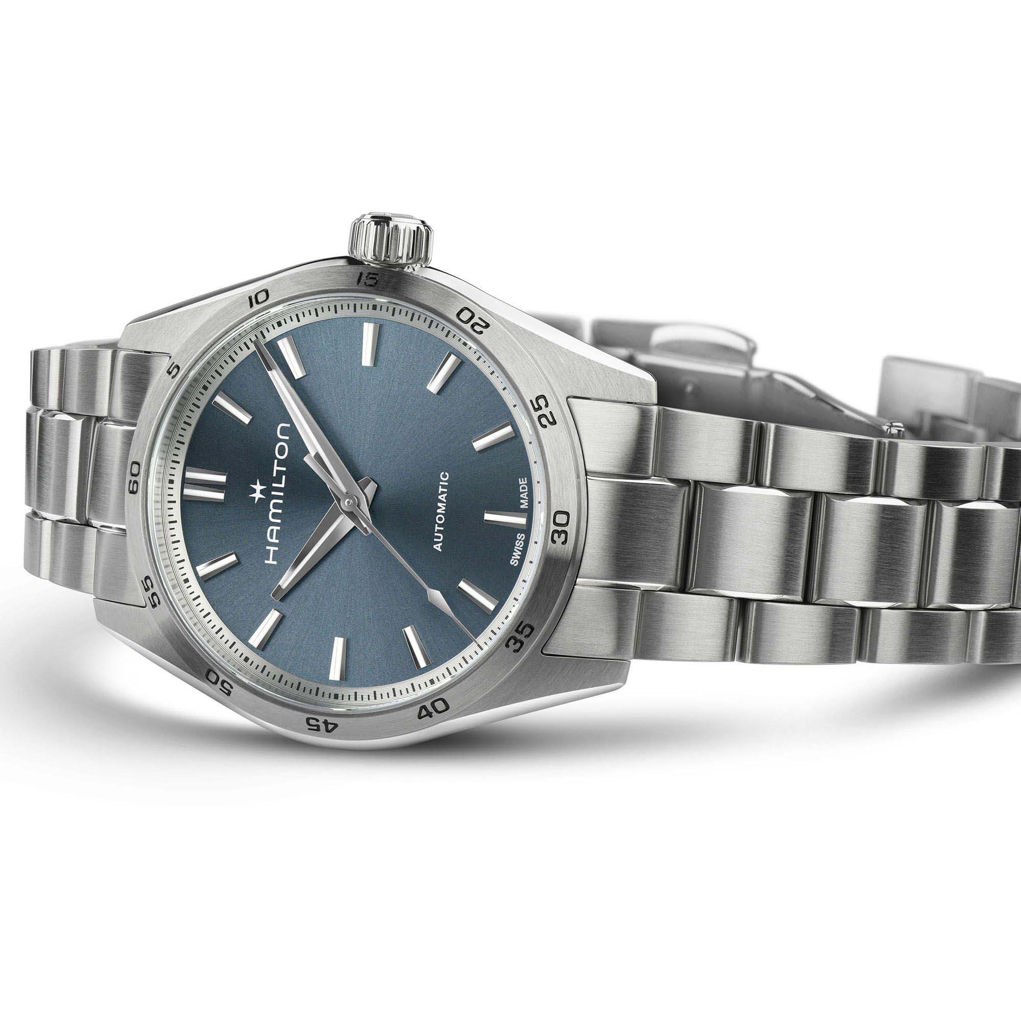 Модели из линии Jazzmaster Performer, привлекающие внимание ярким дизайном в стиле спортивный шик, сочетают в себе функциональность и эстетичность. Часы Jazzmaster Performer Automatic оснащены автоматическим механизмом H-10 с 80-часовым запасом хода. Модель в корпусе из нержавеющей стали диаметром 34 мм имеет лаконичный синий циферблат и изысканный браслет из нержавеющей стали c раскладной застёжкойРаскладная застёжкаТакой тип застёжки используется только на браслетах из металла. Она никогда не раскрывается полностью, происходит разделение на 2 и более частей. Раскладывающая застёжка снизит вероятность потери часов к минимуму..