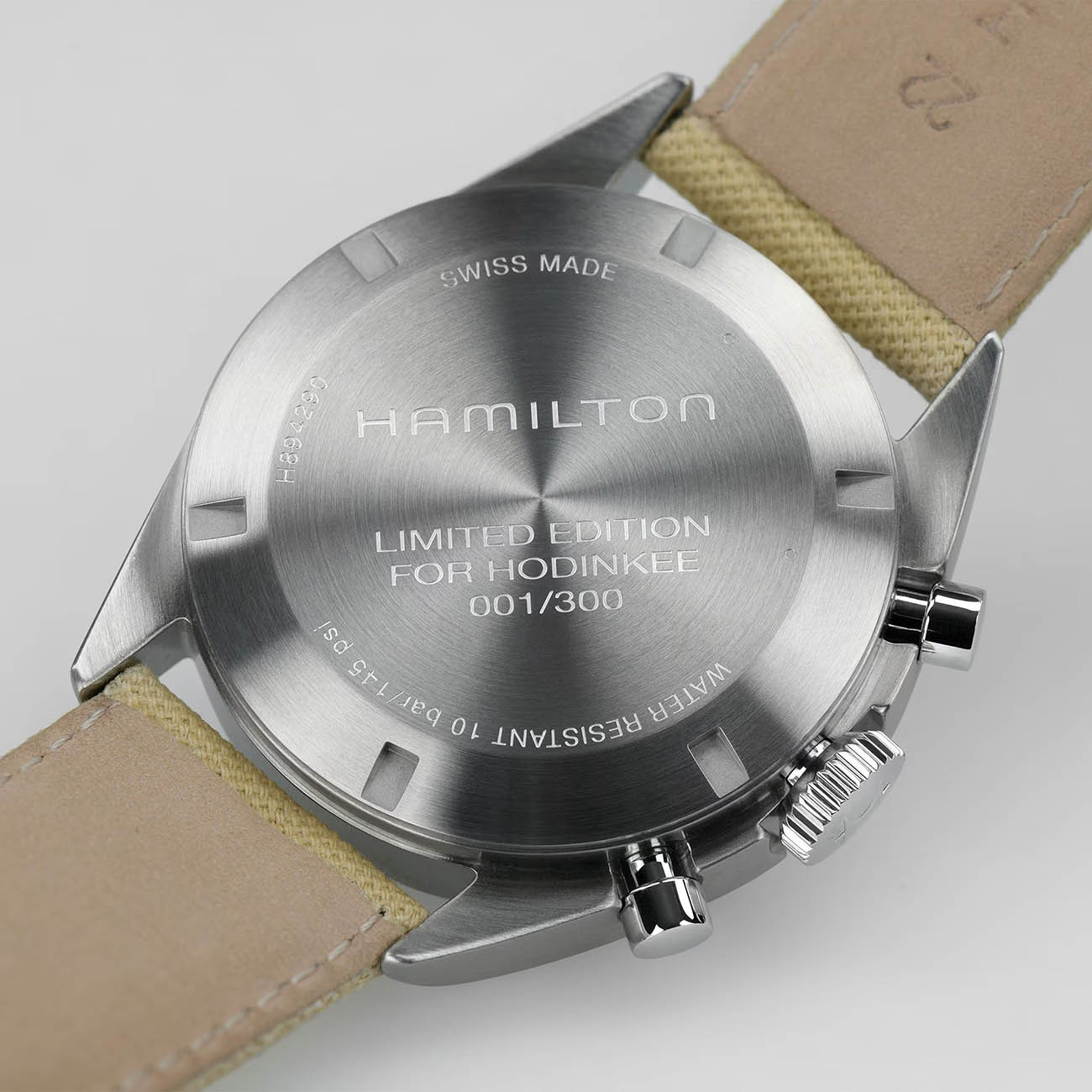 Мужские швейцарские часы Hamilton Khaki Pilot Pioneer Mechanical Chronograph Limited Edition H89429930 — лимитированный выпуск, созданный в коллаборации с Hodinkee как дань уважения хронографам британских ВВС 1970-х годов. Стальной корпус диаметром 40 мм с асимметричным дизайном и увеличенной толщиной 14,35 мм подчеркивает брутальность модели, а сапфировое стеклоСапфировое стеклоПрочный и надёжный материал из кристалла сапфира синтетического происхождения, характеризующийся особой твёрдостью и устойчивостью к царапинам и повреждениям. с двойным антибликовым покрытием обеспечивает превосходную читаемость матового черного циферблата со стрелками с люминесцентным покрытиемЛюминесцентное покрытиеПозволяет считывать показания времени в темноте. Производители наносят на стрелки, часовые индексы, безель или поверхность циферблата светонакопительный состав, дающий холодное свечение.. Модель оснащена функцией хронографаХронографФункция позволяет измерять отрезки времени с особой точностью: часы, минуты, секунды. Верным признаком хронографа является наличие на циферблате 3 дополнительных окошек-счётчиков.. Оранжевая центральная хронографная стрелка сохраняют историческую точность, отсылая к инструментам пилотов самолетов. Механизм с ручным заводом H-51-Si на базе Valjoux 7733 оснащен кремниевой спиралью, обеспечивающей запас хода 60 часов и устойчивость к магнитным полям . Ударопрочный корпусУдаропрочный корпусМеханизм заключён в корпус, выполненный из современных материалов, устойчивых к ударам, механическим повреждениям и падению с высоты: инновационный пластик, карбон, нержавеющая сталь, титан. с водонепроницаемостью 10 бар (100 м) сочетается с бежевым нейлоновым ремешком шириной 22 мм.