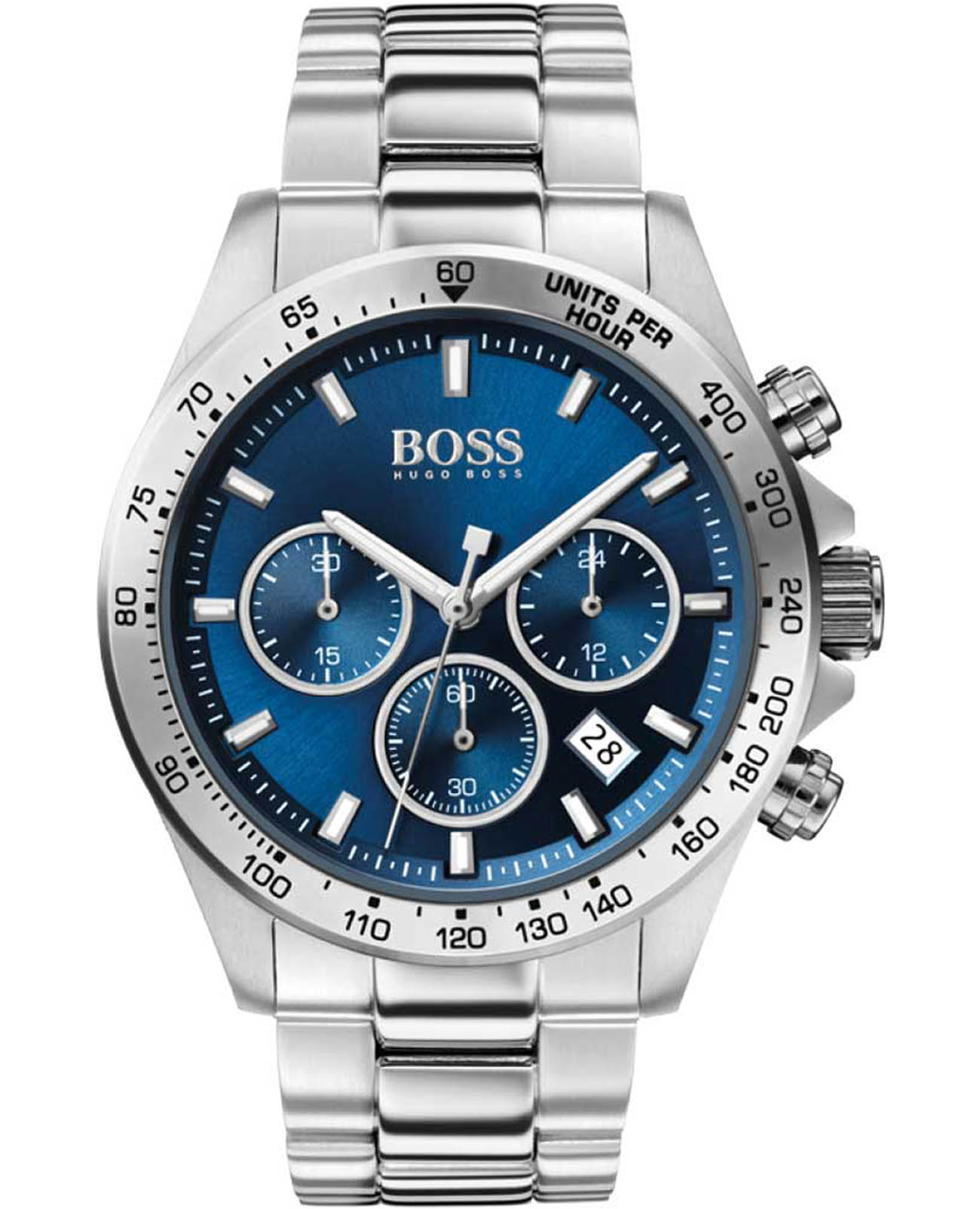 Мужские кварцевые часы Hugo Boss Hero HB1513755 представляют собой стильный хронографХронографФункция позволяет измерять отрезки времени с особой точностью: часы, минуты, секунды. Верным признаком хронографа является наличие на циферблате 3 дополнительных окошек-счётчиков. с круглым корпусом диаметром 43 мм из нержавеющей стали, дополненным синим циферблатом с серебристыми стрелками и штриховыми индексами для оптимальной читаемости. Модель оснащена высокоточным кварцевым механизмом с функцией хронографаХронографФункция позволяет измерять отрезки времени с особой точностью: часы, минуты, секунды. Верным признаком хронографа является наличие на циферблате 3 дополнительных окошек-счётчиков., включая 60-минутный счетчик и индикацию даты. Циферблат защищен устойчивым к царапинам минеральным стекломМинеральное стеклоМинеральное стекло представляет собой искусственно выращенный минерал кварца. Такое стекло отличается особой устойчивостью к повреждениям и царапинам. Уступает по некоторым качествам сапфировому стеклу., а водонепроницаемость 5 ATM (50 метров) обеспечивает защиту от брызг и дождя. Стальной браслет с раскладной застежкойРаскладная застёжкаТакой тип застёжки используется только на браслетах из металла. Она никогда не раскрывается полностью, происходит разделение на 2 и более частей. Раскладывающая застёжка снизит вероятность потери часов к минимуму. обеспечивает надежную посадку на запястье, а тахиметрическая шкалаТахиметрРазмеченная шкала, располагается на ободке или безеле часов. Тахиметр позволяет рассчитать скорость на определённом участке пути, расстояние измеряется в километрах или милях. на безеле позволяет производить расчеты скорости. Точность хода составляет ±15 секунд в месяц, что соответствует стандартам кварцевых механизмов. Дизайн модели сочетает спортивную функциональность с элегантным стилем, характерным для коллекции Hero.