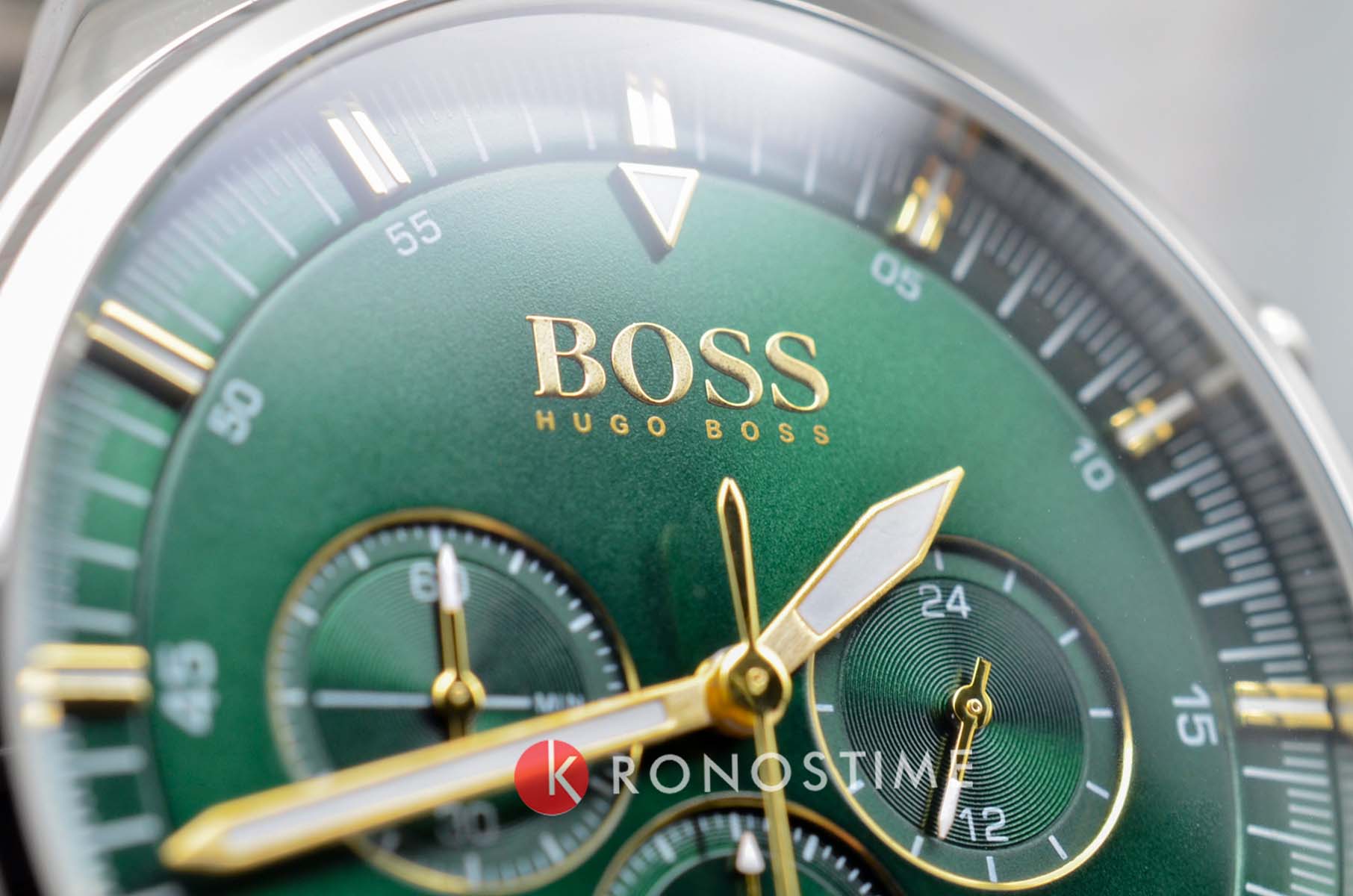 Мужские часы Hugo Boss Pioneer HB1513868 представлены в круглом 44-мм корпусе из нержавеющей стали. Оснащены кварцевым механизмом с функциями хронографаХронографФункция позволяет измерять отрезки времени с особой точностью: часы, минуты, секунды. Верным признаком хронографа является наличие на циферблате 3 дополнительных окошек-счётчиков. и секундомеромСекундомерСекундоме́р — прибор, способный измерять интервалы времени с точностью до долей секунды., а также индикацией даты. Зеленый циферблат с метками в виде штрихов защищен устойчивым к царапинам минеральным стекломМинеральное стеклоМинеральное стекло представляет собой искусственно выращенный минерал кварца. Такое стекло отличается особой устойчивостью к повреждениям и царапинам. Уступает по некоторым качествам сапфировому стеклу.. Браслет из стали дополнен раскладной застёжкойРаскладная застёжкаТакой тип застёжки используется только на браслетах из металла. Она никогда не раскрывается полностью, происходит разделение на 2 и более частей. Раскладывающая застёжка снизит вероятность потери часов к минимуму.. Водонепроницаемость 50 метров (5 ATM) обеспечивает защиту от брызг и дождя.