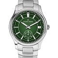 Кварцевые часы серии 1-2197 отличаются удобной индикацией секунд: для этого используется вынесенная на 6 часов стрелка и хорошо читаемые арабские цифры. Для определения часов и минут на зеленом циферблате расположены стрелки с люминесцентным покрытиемЛюминесцентное покрытиеПозволяет считывать показания времени в темноте. Производители наносят на стрелки, часовые индексы, безель или поверхность циферблата светонакопительный состав, дающий холодное свечение. и крупные накладные риски с полировкой. Окошко даты вынесено на 3 часа.
