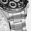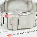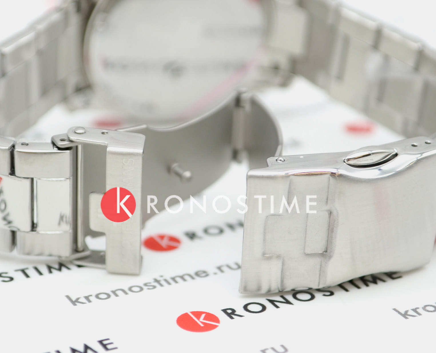 Кварцевый механизм с высокой точностью. БезельБезельВнешний ободок, закрепляющий стекло. В спортивных часах так называется поворотное кольцо с делениями на циферблате, выполняет роль таймера – замеряет отрезки времени на шкале. Неподвижный безель – элемент декора. Однонаправленно вращающийся безель на дайверских часах позволяет фиксировать моменты погружения и выныривания на поверхность. неповоротный. Минеральное стеклоМинеральное стеклоМинеральное стекло представляет собой искусственно выращенный минерал кварца. Такое стекло отличается особой устойчивостью к повреждениям и царапинам. Уступает по некоторым качествам сапфировому стеклу. устойчивое к появлению царапин, обладающее высокой прозрачностью. Стрелки и метки с люминесцентным покрытиемЛюминесцентное покрытиеПозволяет считывать показания времени в темноте. Производители наносят на стрелки, часовые индексы, безель или поверхность циферблата светонакопительный состав, дающий холодное свечение.. Класс водозащиты: 200 метров, позволит плавать, нырять и заниматься другими водными видами спорта. Корпус часов изготовлен из нержавеющей стали. Металлический браслет с раскладной застёжкойРаскладная застёжкаТакой тип застёжки используется только на браслетах из металла. Она никогда не раскрывается полностью, происходит разделение на 2 и более частей. Раскладывающая застёжка снизит вероятность потери часов к минимуму..