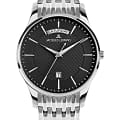 Мужские часы Jacques Lemans 1-2193F – лаконичная красота и изысканная элегантность. Корпус из нержавеющей стали диаметром 40 мм идеально сбалансирован и элегантен. Ударопрочное минеральное стеклоМинеральное стеклоМинеральное стекло представляет собой искусственно выращенный минерал кварца. Такое стекло отличается особой устойчивостью к повреждениям и царапинам. Уступает по некоторым качествам сапфировому стеклу. Crystex защищает циферблат от царапин. Стальной браслет на застёжке-бабочке с кнопкамиЗастёжка "бабочка"Такой вид застёжки дополняется предохранителями, помогающими избежать случайного раскрытия браслета. Обладают изящным исполнением. . Водозащита 50 метров защищает часы от брызг и дождя, делая их подходящими для повседневного использования. Стрелки и метки с люминесцентным покрытиемЛюминесцентное покрытиеПозволяет считывать показания времени в темноте. Производители наносят на стрелки, часовые индексы, безель или поверхность циферблата светонакопительный состав, дающий холодное свечение. позволяющие легко определять время даже в темноте. Окошко даты находится в положении 6 часов. Широкое окошко дня недели в положении 12 часов позволяет показывать название дня недели полностью, без сокращений.