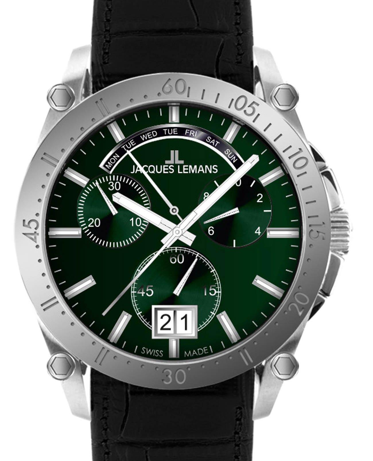 Мужские часы-хронографХронографФункция позволяет измерять отрезки времени с особой точностью: часы, минуты, секунды. Верным признаком хронографа является наличие на циферблате 3 дополнительных окошек-счётчиков. Jacques Lemans 1-2198B – лаконичная красота и изысканная элегантность. Оригинальная модель с классическим оформлением станет превосходным завершением образа, наделив его индивидуальным характером. Корпус выполнен из нержавеющей стали, диаметром 44 мм, что обеспечивает долговечность и утончённый внешний вид. Ударопрочное минеральное стеклоМинеральное стеклоМинеральное стекло представляет собой искусственно выращенный минерал кварца. Такое стекло отличается особой устойчивостью к повреждениям и царапинам. Уступает по некоторым качествам сапфировому стеклу. Crystex защищает циферблат от царапин. Кожаный ремешок на стандартной застёжке обеспечивает комфортное ношение. Водозащита 100 метров позволит плавать, нырять и заниматься другими водными видами спорта. Стрелки и метки с люминесцентным покрытиемЛюминесцентное покрытиеПозволяет считывать показания времени в темноте. Производители наносят на стрелки, часовые индексы, безель или поверхность циферблата светонакопительный состав, дающий холодное свечение. позволяющие легко определять время даже в темноте. Окошко даты находится в положении 6 часов. Широкое окошко дня недели в положении 12 часов позволяет показывать название дня недели. Это аксессуар для мужчины, который ценит классический стиль и функциональность.