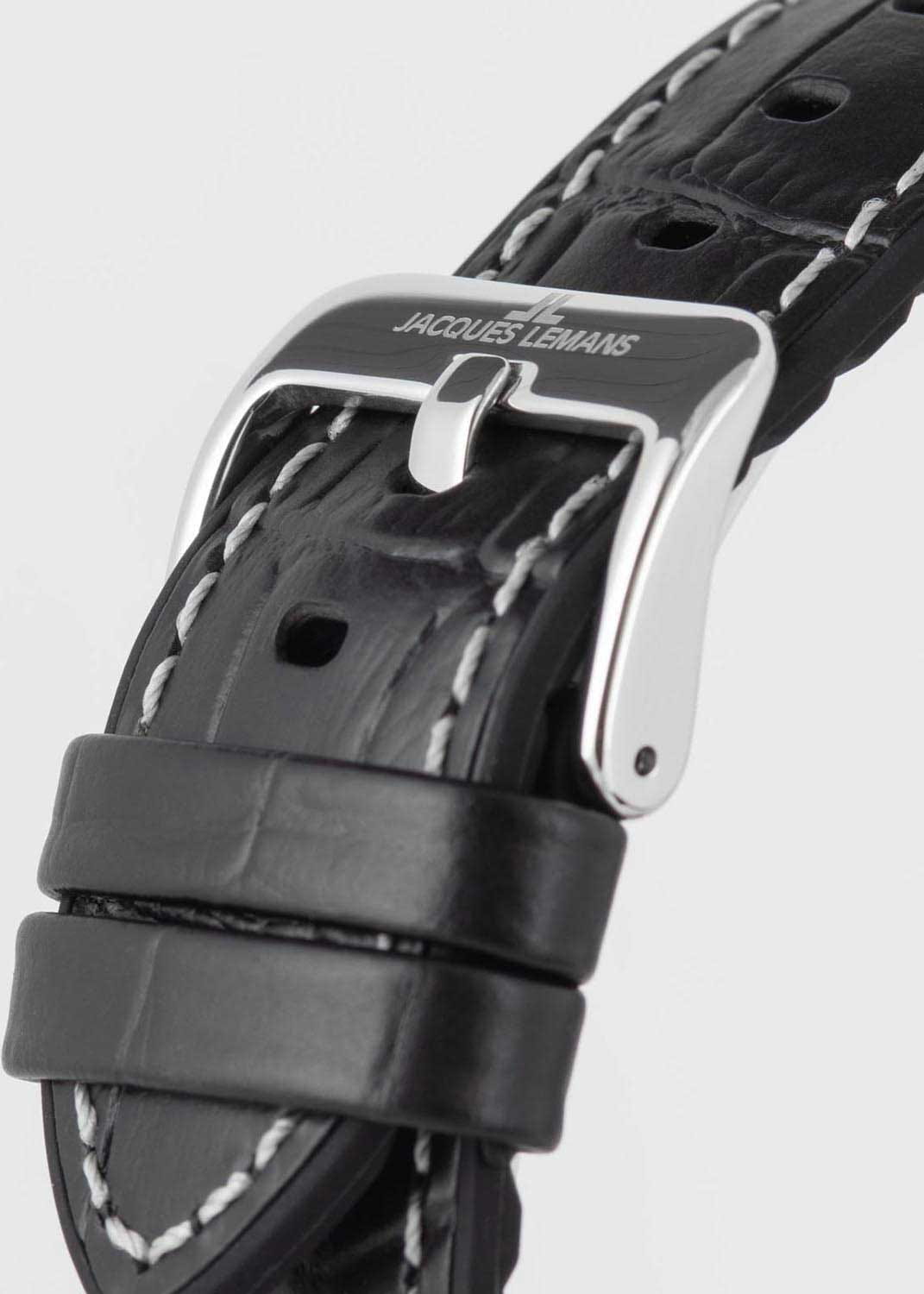 Мужские кварцевые часы-хронографХронографФункция позволяет измерять отрезки времени с особой точностью: часы, минуты, секунды. Верным признаком хронографа является наличие на циферблате 3 дополнительных окошек-счётчиков. с секундомеромСекундомерСекундоме́р — прибор, способный измерять интервалы времени с точностью до долей секунды. Jacques Lemans 1-2206F – лаконичная красота и изысканная элегантность. Оригинальная модель с классическим оформлением станет превосходным завершением образа, наделив его индивидуальным характером. Корпус выполнен из нержавеющей стали серебристого цвета, диаметром 44 мм, что обеспечивает долговечность и утончённый внешний вид. Минеральное стеклоМинеральное стеклоМинеральное стекло представляет собой искусственно выращенный минерал кварца. Такое стекло отличается особой устойчивостью к повреждениям и царапинам. Уступает по некоторым качествам сапфировому стеклу. повышенной прочности Crystex защищает циферблат от царапин. Поворотный безельБезельВнешний ободок, закрепляющий стекло. В спортивных часах так называется поворотное кольцо с делениями на циферблате, выполняет роль таймера – замеряет отрезки времени на шкале. Неподвижный безель – элемент декора. Однонаправленно вращающийся безель на дайверских часах позволяет фиксировать моменты погружения и выныривания на поверхность. с PVD-покрытиемPVDУльтратонкое покрытие наносится в технике вакуумного напыления, сочетает в себе нитрид титана особой прочности со слоем золота или оксида хрома. Несёт в себе декоративную или защитную функцию.. Ремешок состоит из двух частей: внутренняя сделана из силикона, внешняя — из натуральной кожи. Классическая застежка с логотипом бренда. Водозащита 200 метров позволит плавать, нырять и заниматься другими водными видами спорта. Стрелки и метки с люминесцентным покрытиемЛюминесцентное покрытиеПозволяет считывать показания времени в темноте. Производители наносят на стрелки, часовые индексы, безель или поверхность циферблата светонакопительный состав, дающий холодное свечение. позволяющие легко определять время даже в темноте. 12-ти и 24-х часовой формат времени. Окошко даты находится в положении между 4 и 5 часами. Рифленая заводная головка с защитой. Это аксессуар для мужчины, который ценит классический стиль и функциональность.