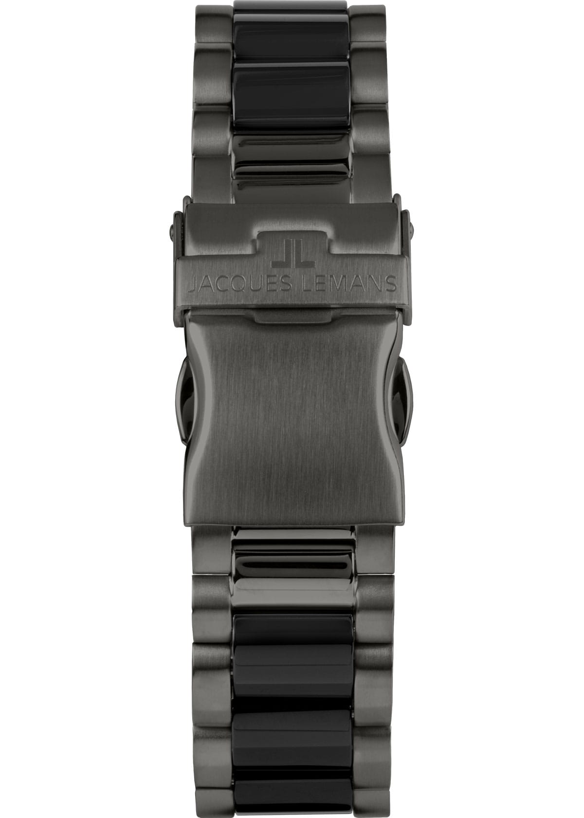 Мужские часы Jacques Lemans Venice 1-2222A с сапфировым стекломСапфировое стеклоПрочный и надёжный материал из кристалла сапфира синтетического происхождения, характеризующийся особой твёрдостью и устойчивостью к царапинам и повреждениям., гибрид кварца и механики с автоподзаводом. Лимитированная серия революционных часов Hybromatic: всего выпущено 999 штук каждой модели. Вращающийся безельБезельВнешний ободок, закрепляющий стекло. В спортивных часах так называется поворотное кольцо с делениями на циферблате, выполняет роль таймера – замеряет отрезки времени на шкале. Неподвижный безель – элемент декора. Однонаправленно вращающийся безель на дайверских часах позволяет фиксировать моменты погружения и выныривания на поверхность. из нержавеющей стали с PVDPVDУльтратонкое покрытие наносится в технике вакуумного напыления, сочетает в себе нитрид титана особой прочности со слоем золота или оксида хрома. Несёт в себе декоративную или защитную функцию. покрытием. Стрелки и метки с люминесцентным покрытиемЛюминесцентное покрытиеПозволяет считывать показания времени в темноте. Производители наносят на стрелки, часовые индексы, безель или поверхность циферблата светонакопительный состав, дающий холодное свечение.. Окошко даты расположено в позиции «3 часа». Класс водозащиты: 200 метров, позволит плавать, нырять и заниматься другими водными видами спорта. Прозрачная задняя крышка позволит в подробностях разглядеть необычный механизм. Браслет из нержавеющей стали с PVDPVDУльтратонкое покрытие наносится в технике вакуумного напыления, сочетает в себе нитрид титана особой прочности со слоем золота или оксида хрома. Несёт в себе декоративную или защитную функцию. покрытием и высокотехнологичной керамикиВысокотехнологичная керамикаИнновационный запатентованный Rado материал с гладкой или матовой поверхностью. Керамика за счёт кристаллической структуры обладает повышенной устойчивостью от возникновения царапин. Материал способен принимать температуру тела человека, обеспечивая невероятный комфорт при ношении. на раскладной застёжкеРаскладная застёжкаТакой тип застёжки используется только на браслетах из металла. Она никогда не раскрывается полностью, происходит разделение на 2 и более частей. Раскладывающая застёжка снизит вероятность потери часов к минимуму..
