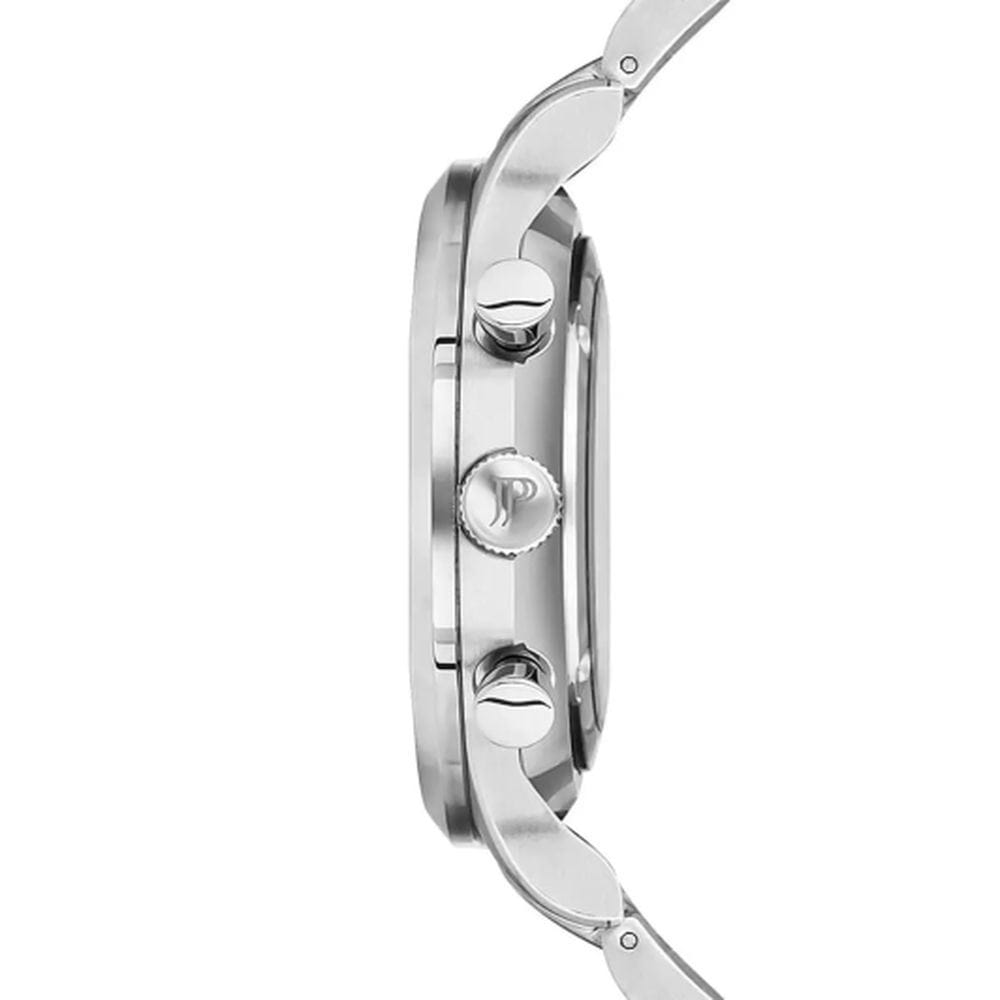 Швейцарские мужские часы-хронографХронографФункция позволяет измерять отрезки времени с особой точностью: часы, минуты, секунды. Верным признаком хронографа является наличие на циферблате 3 дополнительных окошек-счётчиков. Jacques Philippe Gallant JPQGC031316N, кварцевый механизм с высокой точностью. Сапфировое стеклоСапфировое стеклоПрочный и надёжный материал из кристалла сапфира синтетического происхождения, характеризующийся особой твёрдостью и устойчивостью к царапинам и повреждениям. устойчивое к появлению царапин, обладающее высокой прозрачностью. Корпус часов изготовлен из нержавеющей стали. На циферблате три дополнительных индикатора. Стрелки с люминесцентным покрытиемЛюминесцентное покрытиеПозволяет считывать показания времени в темноте. Производители наносят на стрелки, часовые индексы, безель или поверхность циферблата светонакопительный состав, дающий холодное свечение.. Окошко даты находится между 4 и 5 часами. Класс водозащиты: 50 метров, позволит защитить корпус от случайных брызг или капель дождя. Стальной браслет на застёжке «бабочка» с кнопкамиЗастёжка "бабочка"Такой вид застёжки дополняется предохранителями, помогающими избежать случайного раскрытия браслета. Обладают изящным исполнением. .