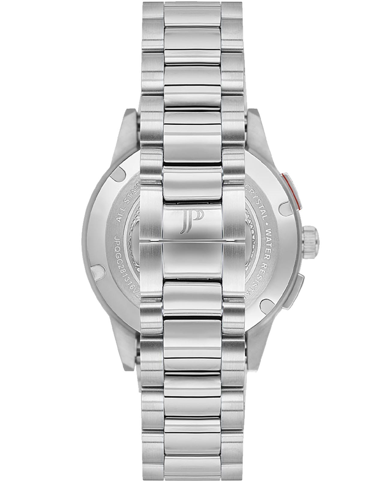 Швейцарские мужские часы-хронографХронографФункция позволяет измерять отрезки времени с особой точностью: часы, минуты, секунды. Верным признаком хронографа является наличие на циферблате 3 дополнительных окошек-счётчиков. с секундомеромСекундомерСекундоме́р — прибор, способный измерять интервалы времени с точностью до долей секунды. Jacques Philippe Globus JPQGC281316V2, кварцевый механизм с высокой точностью. Сапфировое стеклоСапфировое стеклоПрочный и надёжный материал из кристалла сапфира синтетического происхождения, характеризующийся особой твёрдостью и устойчивостью к царапинам и повреждениям. устойчивое к появлению царапин, обладающее высокой прозрачностью. Корпус часов изготовлен из нержавеющей стали. БезельБезельВнешний ободок, закрепляющий стекло. В спортивных часах так называется поворотное кольцо с делениями на циферблате, выполняет роль таймера – замеряет отрезки времени на шкале. Неподвижный безель – элемент декора. Однонаправленно вращающийся безель на дайверских часах позволяет фиксировать моменты погружения и выныривания на поверхность. из стали с тахиметромТахиметрРазмеченная шкала, располагается на ободке или безеле часов. Тахиметр позволяет рассчитать скорость на определённом участке пути, расстояние измеряется в километрах или милях.. На циферблате три дополнительных индикатора. Окошко даты находится в положении 6 часов. Стрелки с люминесцентным покрытиемЛюминесцентное покрытиеПозволяет считывать показания времени в темноте. Производители наносят на стрелки, часовые индексы, безель или поверхность циферблата светонакопительный состав, дающий холодное свечение.. Класс водозащиты: 100 метров, позволит плавать, нырять и заниматься другими водными видами спорта. Стальной браслет на застёжке «бабочка» с кнопкамиЗастёжка "бабочка"Такой вид застёжки дополняется предохранителями, помогающими избежать случайного раскрытия браслета. Обладают изящным исполнением. .