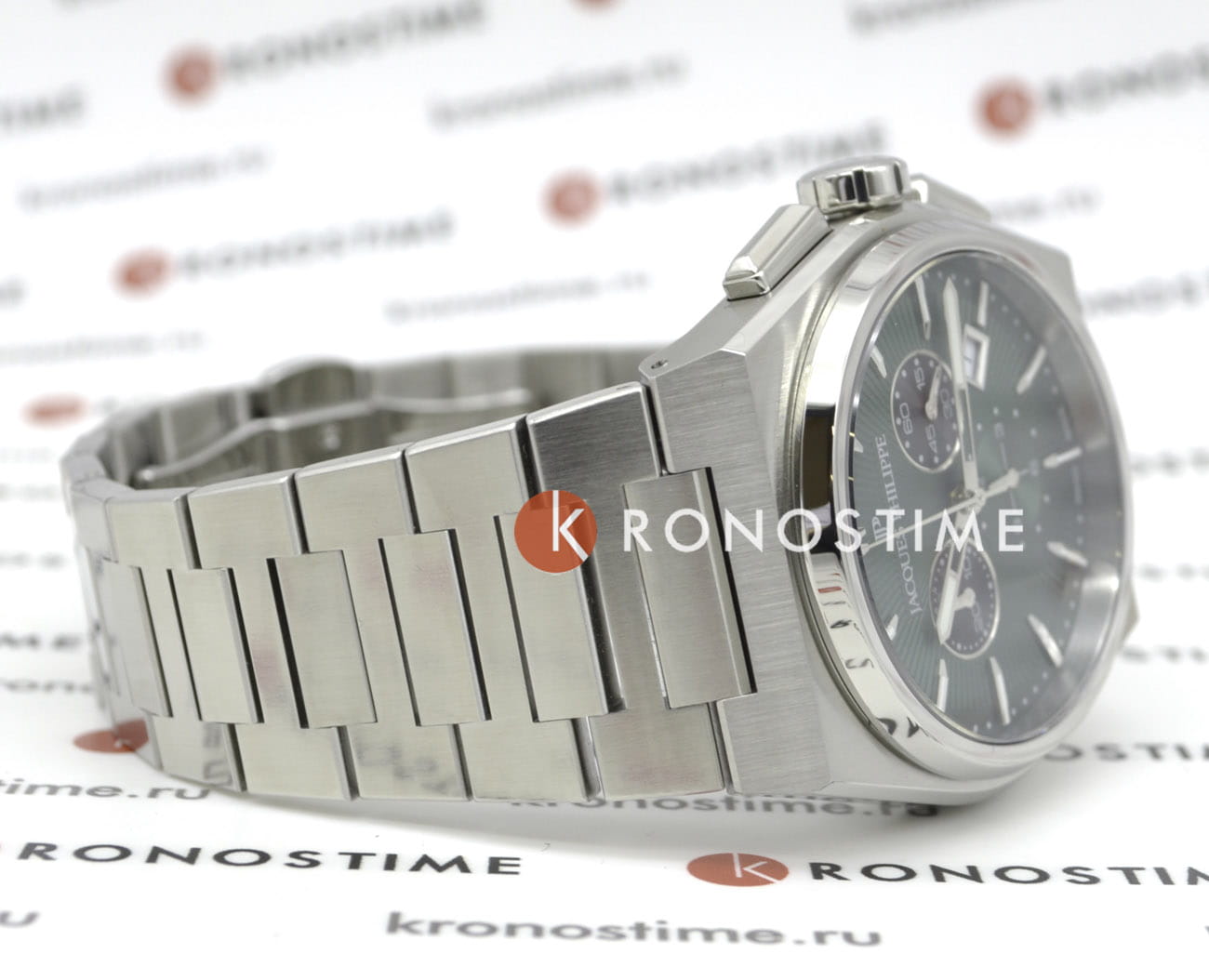 Швейцарские мужские часы-хронографХронографФункция позволяет измерять отрезки времени с особой точностью: часы, минуты, секунды. Верным признаком хронографа является наличие на циферблате 3 дополнительных окошек-счётчиков. с секундомеромСекундомерСекундоме́р — прибор, способный измерять интервалы времени с точностью до долей секунды. Jacques Philippe Aurora JPQGC4113X6, кварцевый механизм с высокой точностью. Сапфировое стеклоСапфировое стеклоПрочный и надёжный материал из кристалла сапфира синтетического происхождения, характеризующийся особой твёрдостью и устойчивостью к царапинам и повреждениям. устойчивое к появлению царапин, обладающее высокой прозрачностью. Корпус часов изготовлен из нержавеющей стали. На циферблате три дополнительных индикатора. Окошко даты находится в положении 4 часа. Стрелки с люминесцентным покрытиемЛюминесцентное покрытиеПозволяет считывать показания времени в темноте. Производители наносят на стрелки, часовые индексы, безель или поверхность циферблата светонакопительный состав, дающий холодное свечение.. Класс водозащиты: 50 метров, позволит защитить корпус от случайных брызг или капель дождя. Стальной браслет на застёжке «бабочка» с кнопкамиЗастёжка "бабочка"Такой вид застёжки дополняется предохранителями, помогающими избежать случайного раскрытия браслета. Обладают изящным исполнением. .