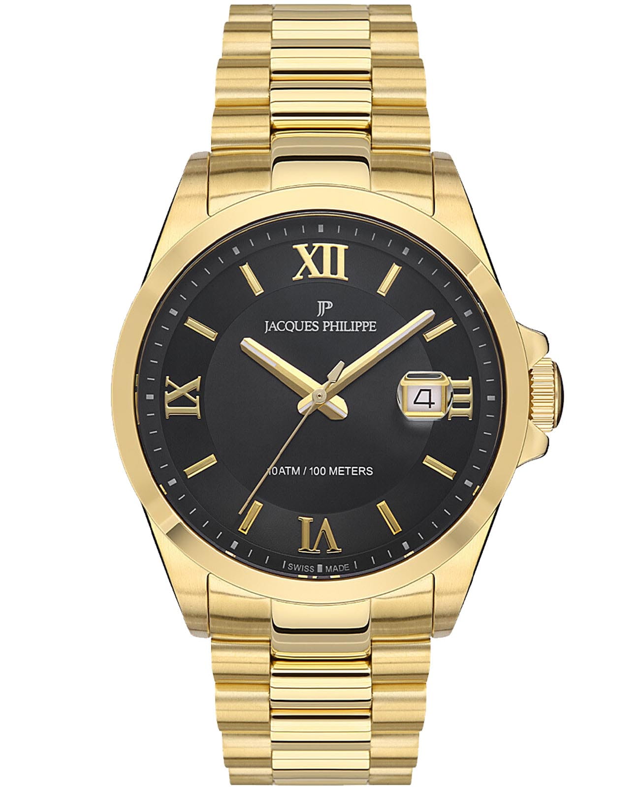 Швейцарские Женские часы Jacques Philippe Infinitum JPQGS332314, кварцевый механизм с высокой точностью. Сапфировое стеклоСапфировое стеклоПрочный и надёжный материал из кристалла сапфира синтетического происхождения, характеризующийся особой твёрдостью и устойчивостью к царапинам и повреждениям. устойчивое к появлению царапин, обладающее высокой прозрачностью. Корпус и браслет часов изготовлены из нержавеющей стали с IP-покрытиемIP-покрытиеМетод ионного напыления. Демонстрирует повышенную устойчивость к истиранию, окислению и химическим веществам. Под воздействием высокого давления и температуры около 1500°C молекулы металла надёжно соединяются с частицами корпуса часов.. Стрелки с люминесцентным покрытиемЛюминесцентное покрытиеПозволяет считывать показания времени в темноте. Производители наносят на стрелки, часовые индексы, безель или поверхность циферблата светонакопительный состав, дающий холодное свечение.. Окошко даты находится в положении 3 часа. Класс водозащиты: 100 метров, позволит плавать, нырять и заниматься другими водными видами спорта. Стальной браслет на застёжке «бабочка» с кнопкамиЗастёжка "бабочка"Такой вид застёжки дополняется предохранителями, помогающими избежать случайного раскрытия браслета. Обладают изящным исполнением. .