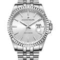 Jacques Philippe JPQGS591326V2 — мужские часы в сдержанном классическом исполнении с акцентом на простоту и надёжность. Корпус диаметром 40 мм выполнен из нержавеющей стали, а его умеренная толщина — около 12 мм — делает модель универсальной и комфортной в повседневной носке. Циферблат оформлен в светлом металлическом тоне с тонкими стрелками, лаконичными часовыми метками и аккуратным окошком даты в позиции «3 часа». Минималистичный стиль подчёркивает строгость и чистоту дизайна. Поверхность защищена устойчивым к царапинам сапфировым стекломСапфировое стеклоПрочный и надёжный материал из кристалла сапфира синтетического происхождения, характеризующийся особой твёрдостью и устойчивостью к царапинам и повреждениям., которое обеспечивает хорошую читаемость и долговечность. Механизм — точный швейцарский кварц, не требующий подзавода. Он обеспечивает стабильную и бесперебойную работу часов, сохраняя точность в любых условиях. Браслет из нержавеющей стали визуально продолжает корпус и фиксируется с помощью надёжной застёжки, обеспечивая комфортную посадку. Ширина браслета — 22 мм. Водозащита до 10 ATM позволяет использовать часы не только в повседневной жизни, но и при активности на воде. Jacques Philippe — это надёжная и универсальная модель для тех, кто ценит швейцарскую точность, простоту и уверенный стиль без лишних деталей.