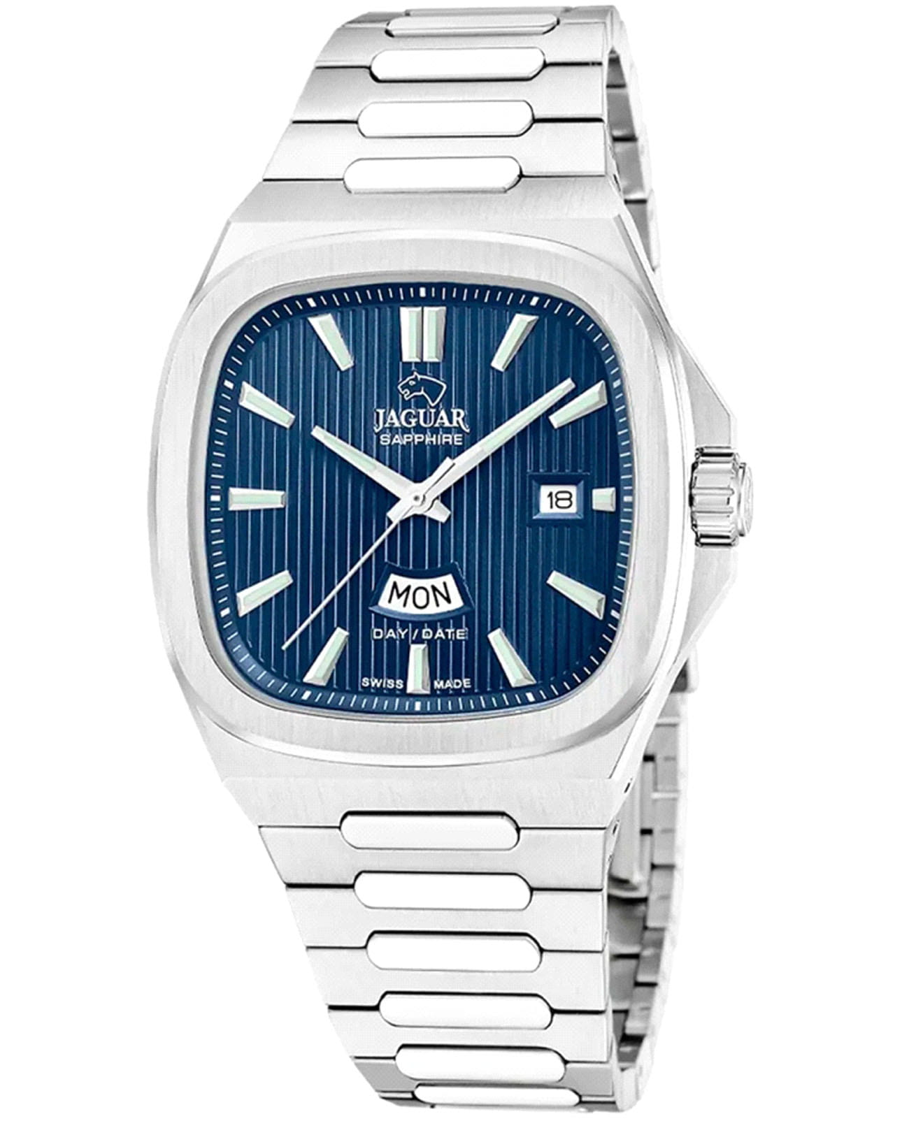 Мужские швейцарские часы Jaguar Rond Carre J1049/2 — это стильное сочетание элегантности и современного дизайна. Корпус из нержавеющей стали диаметром 41 мм идеально сбалансирован и элегантен. Сапфировое стеклоСапфировое стеклоПрочный и надёжный материал из кристалла сапфира синтетического происхождения, характеризующийся особой твёрдостью и устойчивостью к царапинам и повреждениям. с антибликовым покрытием защищает циферблат от царапин и обеспечивает отличную читаемость при любом освещении. Стальной браслет на застёжке-бабочке с кнопкамиЗастёжка "бабочка"Такой вид застёжки дополняется предохранителями, помогающими избежать случайного раскрытия браслета. Обладают изящным исполнением. идеально дополняют дизайн часов, обеспечивая комфортное ношение. Стрелки и метки на циферблате имеют люминесцентное покрытиеЛюминесцентное покрытиеПозволяет считывать показания времени в темноте. Производители наносят на стрелки, часовые индексы, безель или поверхность циферблата светонакопительный состав, дающий холодное свечение. позволяющее легко определять время даже в темноте. В часах есть функции отображение даты в позиции "3 часа" и дня недели на "6 часов" с помощью которой вы сможете измерять время с высокой точностью. Часы обладают водонепроницаемостью 50 метров, что позволит защитить корпус от случайных брызг или капель дождя.