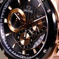 Мужские швейцарские часы-хронографХронографФункция позволяет измерять отрезки времени с особой точностью: часы, минуты, секунды. Верным признаком хронографа является наличие на циферблате 3 дополнительных окошек-счётчиков. Jaguar Special Edition J691/1. Кварцевый швейцарский калибр Ronda 5030.D. Сапфировое стеклоСапфировое стеклоПрочный и надёжный материал из кристалла сапфира синтетического происхождения, характеризующийся особой твёрдостью и устойчивостью к царапинам и повреждениям. устойчивое к мелким механическим повреждениям. Корпус часов изготовлен из нержавеющей стали с PVD-покрытиемPVDУльтратонкое покрытие наносится в технике вакуумного напыления, сочетает в себе нитрид титана особой прочности со слоем золота или оксида хрома. Несёт в себе декоративную или защитную функцию.. Стрелки и метки с люминесцентным покрытиемЛюминесцентное покрытиеПозволяет считывать показания времени в темноте. Производители наносят на стрелки, часовые индексы, безель или поверхность циферблата светонакопительный состав, дающий холодное свечение.. Окошко даты находится в положении между «3» и «6 часами». Класс водозащиты: 100 метров, позволит плавать, нырять и заниматься другими водными видами спорта. Силиконовый ремешок на стандартной застёжке. БезельБезельВнешний ободок, закрепляющий стекло. В спортивных часах так называется поворотное кольцо с делениями на циферблате, выполняет роль таймера – замеряет отрезки времени на шкале. Неподвижный безель – элемент декора. Однонаправленно вращающийся безель на дайверских часах позволяет фиксировать моменты погружения и выныривания на поверхность. с PVD-покрытиемPVDУльтратонкое покрытие наносится в технике вакуумного напыления, сочетает в себе нитрид титана особой прочности со слоем золота или оксида хрома. Несёт в себе декоративную или защитную функцию..