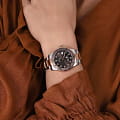 Женские швейцарские часы Jaguar Couple Diver J871/2. Кварцевый швейцарский калибр Ronda 705. Сапфировое стеклоСапфировое стеклоПрочный и надёжный материал из кристалла сапфира синтетического происхождения, характеризующийся особой твёрдостью и устойчивостью к царапинам и повреждениям. устойчивое к мелким механическим повреждениям. Корпус часов изготовлен из нержавеющей стали. Стрелки и метки с люминесцентным покрытиемЛюминесцентное покрытиеПозволяет считывать показания времени в темноте. Производители наносят на стрелки, часовые индексы, безель или поверхность циферблата светонакопительный состав, дающий холодное свечение.. Окошко даты находится в положении 3 часа. Класс водозащиты: 200 метров, позволит плавать, нырять и заниматься другими водными видами спорта. Стальной браслет с частичным PVD-покрытиемPVDУльтратонкое покрытие наносится в технике вакуумного напыления, сочетает в себе нитрид титана особой прочности со слоем золота или оксида хрома. Несёт в себе декоративную или защитную функцию. на раскладной застёжкеРаскладная застёжкаТакой тип застёжки используется только на браслетах из металла. Она никогда не раскрывается полностью, происходит разделение на 2 и более частей. Раскладывающая застёжка снизит вероятность потери часов к минимуму.. Циферблат украшен 11 кристаллами в роли часовых индексов. БезельБезельВнешний ободок, закрепляющий стекло. В спортивных часах так называется поворотное кольцо с делениями на циферблате, выполняет роль таймера – замеряет отрезки времени на шкале. Неподвижный безель – элемент декора. Однонаправленно вращающийся безель на дайверских часах позволяет фиксировать моменты погружения и выныривания на поверхность. с PVD-покрытиемPVDУльтратонкое покрытие наносится в технике вакуумного напыления, сочетает в себе нитрид титана особой прочности со слоем золота или оксида хрома. Несёт в себе декоративную или защитную функцию..
