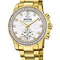 Женские швейцарские часы Jaguar Connected Lady J983/1. Сапфировое стеклоСапфировое стеклоПрочный и надёжный материал из кристалла сапфира синтетического происхождения, характеризующийся особой твёрдостью и устойчивостью к царапинам и повреждениям. устойчивое к мелким механическим повреждениям. Корпус часов изготовлен из нержавеющей стали с PVD-покрытиемPVDУльтратонкое покрытие наносится в технике вакуумного напыления, сочетает в себе нитрид титана особой прочности со слоем золота или оксида хрома. Несёт в себе декоративную или защитную функцию.. Стрелки с люминесцентным покрытиемЛюминесцентное покрытиеПозволяет считывать показания времени в темноте. Производители наносят на стрелки, часовые индексы, безель или поверхность циферблата светонакопительный состав, дающий холодное свечение.. Класс водозащиты: 50 метров, позволит защитить корпус от случайных брызг или капель дождя. БезельБезельВнешний ободок, закрепляющий стекло. В спортивных часах так называется поворотное кольцо с делениями на циферблате, выполняет роль таймера – замеряет отрезки времени на шкале. Неподвижный безель – элемент декора. Однонаправленно вращающийся безель на дайверских часах позволяет фиксировать моменты погружения и выныривания на поверхность. с PVD-покрытиемPVDУльтратонкое покрытие наносится в технике вакуумного напыления, сочетает в себе нитрид титана особой прочности со слоем золота или оксида хрома. Несёт в себе декоративную или защитную функцию. и циферблат инкрустированы цирконием. Стальной браслет с PVD-покрытиемPVDУльтратонкое покрытие наносится в технике вакуумного напыления, сочетает в себе нитрид титана особой прочности со слоем золота или оксида хрома. Несёт в себе декоративную или защитную функцию. на раскладной застёжкеРаскладная застёжкаТакой тип застёжки используется только на браслетах из металла. Она никогда не раскрывается полностью, происходит разделение на 2 и более частей. Раскладывающая застёжка снизит вероятность потери часов к минимуму.. За точный ход работы часов, из коллекции Connected, отвечает кварцевый гибридный механизм швейцарского производства со Смарт-Модулем. Данный тип механизма обеспечивает возможность подключить часы к телефону через Bluetooth и управлять большим рядом дополнительных функций на выбор с помошью приложения Jaguar. Дополнительные функции: отображение даты и дня недели, секундомер, таймер, GMT, шагомер, поиск телефона, включение/выключение звука телефона при входящих вызовах, переключение музыки, вибро-уведомления.