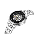 Мужские механические часы-скелетоны с минеральным стекломМинеральное стеклоМинеральное стекло представляет собой искусственно выращенный минерал кварца. Такое стекло отличается особой устойчивостью к повреждениям и царапинам. Уступает по некоторым качествам сапфировому стеклу. Kenneth Cole Automatic KCWGL2216907, механический механизм (автоматический калибр) с высокой точностью. Корпус часов изготовлен из стали. Стрелки с люминесцентным покрытиемЛюминесцентное покрытиеПозволяет считывать показания времени в темноте. Производители наносят на стрелки, часовые индексы, безель или поверхность циферблата светонакопительный состав, дающий холодное свечение.. Класс водозащиты: 30 метров, позволит защитить корпус от случайных брызг или капель дождя. Стальной браслет на раскладной застёжкеРаскладная застёжкаТакой тип застёжки используется только на браслетах из металла. Она никогда не раскрывается полностью, происходит разделение на 2 и более частей. Раскладывающая застёжка снизит вероятность потери часов к минимуму..