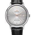 Российские мужские механические часы Космос K 043.11.32 из коллекции Юпитер с автоподзаводом оснащены точным японским механизмом. Полированный корпус из нержавеющей стали 316L диаметром 41 мм защищен минеральным стекломМинеральное стеклоМинеральное стекло представляет собой искусственно выращенный минерал кварца. Такое стекло отличается особой устойчивостью к повреждениям и царапинам. Уступает по некоторым качествам сапфировому стеклу., выпуклым с обеих сторон, что придает ему сходство с силуэтом летающей тарелки. Серый циферблат с градиентной шлифовкой в стиле солнечных лучей украшен изготовленными вручную индексами, крепящимися на двух штифтах. Часовая и минутная стрелки, а также круг по краю циферблата, имеют люминесцентное покрытиеЛюминесцентное покрытиеПозволяет считывать показания времени в темноте. Производители наносят на стрелки, часовые индексы, безель или поверхность циферблата светонакопительный состав, дающий холодное свечение., которое обеспечивает хорошую видимость в темноте. Модель дополнена функциями отображения даты и дня недели. Прозрачная задняя крышка позволяет наблюдать за работой механизма. Часы имеют водонепроницаемость 50 метров, позволит защитить корпус от случайных брызг или капель дождя. Модель комплектуется ремешком из натуральной кожи черного цвета на стандартной застежке, украшенной фирменным логотипом. Заводная головка также декорирована логотипом бренда. Эти часы сочетают в себе уникальный дизайн, вдохновленный космической темой, и высокое качество исполнения, делая их идеальным выбором для ценителей стильных и функциональных аксессуаров.