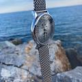 Российские мужские кварцевые часы Космос K 067.10.33 из коллекции Сатурн оснащены механизмом Miyota. Круглый корпус из нержавеющей стали 316L диаметром 41 мм и толщиной 13 мм защищен минеральным стекломМинеральное стеклоМинеральное стекло представляет собой искусственно выращенный минерал кварца. Такое стекло отличается особой устойчивостью к повреждениям и царапинам. Уступает по некоторым качествам сапфировому стеклу.. Серебристый циферблат с серыми элементами и градиентной шлифовкой в стиле солнечных лучей украшен изготовленными вручную индексами, крепящимися на двух штифтах. Часы имеют функции отображения даты центральной стрелкой, дня недели и индикатора фаз луны. Часовая, минутная стрелки, круг по краю циферблата и линия вокруг окошка индикатора фаз луны имеют люминесцентное покрытиеЛюминесцентное покрытиеПозволяет считывать показания времени в темноте. Производители наносят на стрелки, часовые индексы, безель или поверхность циферблата светонакопительный состав, дающий холодное свечение., которое светится в темноте, создавая эффект ореола вокруг Земли. На задней крышке выгравирован фантазийный сюжет — космическая станция будущего. Полированный корпус часов напоминает силуэт летающей тарелки благодаря выпуклым формам стекла и нижней части корпуса. Часы имеют водонепроницаемость 50 метров, позволит защитить корпус от случайных брызг или капель дождя. Модель комплектуется стальным браслетом миланского плетения на раскладном замкеРаскладной замокДанный вариант застежки используется только на часах с металлическим браслетом. Отличительная особенность такого крепления в том, что длина браслета становится универсальной и вы можете самостоятельно отрегулировать нужный вам размер – застежка просто двигается по браслету часов.. Эти часы сочетают в себе классический дизайн, современные технологии и футуристическое вдохновение, делая их идеальным выбором для ценителей точности и элегантности.