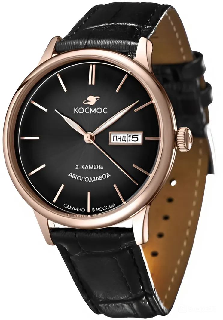 Мужские наручные часы Космос Телескоп K 304.41.31 — это уникальная лимитированная серия под названием Телескоп, посвящена аппарату приоткрывающего взгляду бескрайние дали космического пространства. Апертура открытого баланса модели по форме напоминает круглую линзу телескопа. Сквозь это окошко, расположенное на черном циферблате, также можно увидеть много интересного: ту самую систему «баланс-спираль» автоматического механизма, которая отвечает за точность хода. Корпус часов выполнен из нержавеющей стали с PVDPVDУльтратонкое покрытие наносится в технике вакуумного напыления, сочетает в себе нитрид титана особой прочности со слоем золота или оксида хрома. Несёт в себе декоративную или защитную функцию. покрытием, классической круглой формы и достаточно тонкий для механических моделей. Это стало возможным благодаря использованию механизма Miyota, калибр 9029, с высотой всего 3.9 мм. Циферблат декорирован вертикальной текстурой в ретро-стиле, по которой движутся крупные часовая и минутная стрелки, имеющие люминесцентное покрытиеЛюминесцентное покрытиеПозволяет считывать показания времени в темноте. Производители наносят на стрелки, часовые индексы, безель или поверхность циферблата светонакопительный состав, дающий холодное свечение., позволяющее определять время даже в темноте. Циферблат защищен прочным сапфировым стеклом с антибликовым покрытиемСапфировое стеклоПрочный и надёжный материал из кристалла сапфира синтетического происхождения, характеризующийся особой твёрдостью и устойчивостью к царапинам и повреждениям., обеспечивающим отличную читаемость показаний в любых условиях. Прозрачная задняя крышка, закрепленная на четырех винтах, демонстрирует механизм и содержит выгравированный индивидуальный номер экземпляра хх/50, отражающий лимитированный тираж всего в 50 штук. Ремешок часов сделан из натуральной кожи черного цвета и оснащен удобной застёжкой «бабочка» с кнопкамиЗастёжка "бабочка"Такой вид застёжки дополняется предохранителями, помогающими избежать случайного раскрытия браслета. Обладают изящным исполнением. , которая сводит к минимуму вероятность потери. Модель Телескоп сочетает классический дизайн и универсальность, прекрасно подходя как к деловому костюму, так и к более повседневным образам.