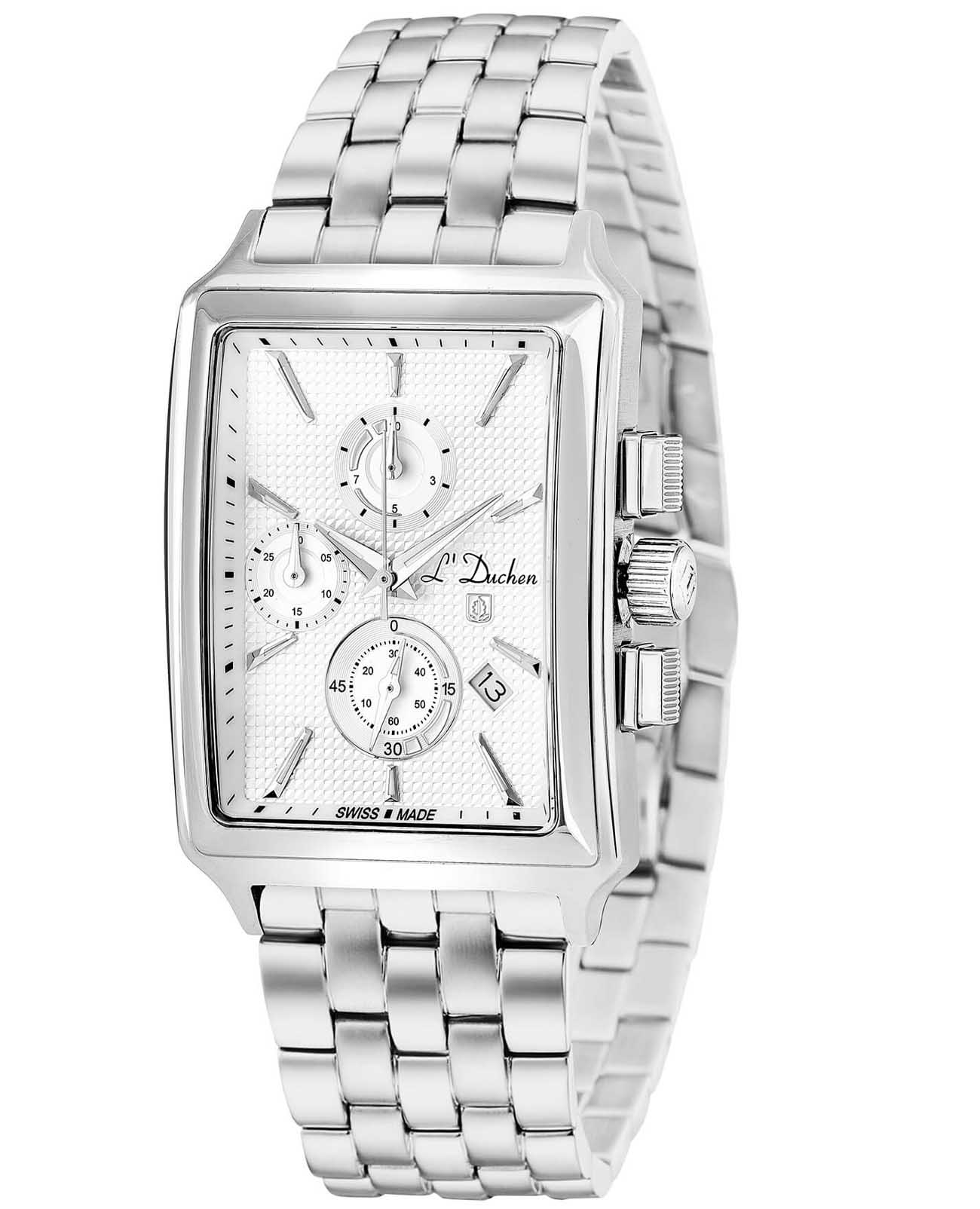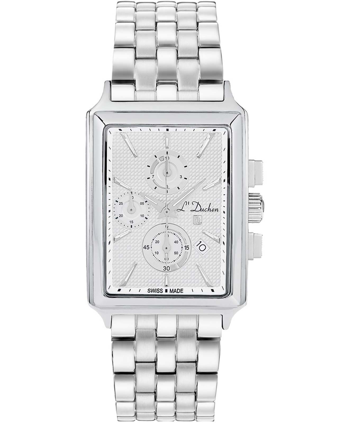 Мужские швейцарские часы- хронографХронографФункция позволяет измерять отрезки времени с особой точностью: часы, минуты, секунды. Верным признаком хронографа является наличие на циферблате 3 дополнительных окошек-счётчиков. L'Duchen Adventure Chrono D 612.10.33, кварцевый механизм с высокой точностью. Сапфировое стеклоСапфировое стеклоПрочный и надёжный материал из кристалла сапфира синтетического происхождения, характеризующийся особой твёрдостью и устойчивостью к царапинам и повреждениям. устойчивое к появлению царапин, обладающее высокой прозрачностью. Корпус часов выполнен из нержавеющей стали. Стрелки с люминесцентным покрытиемЛюминесцентное покрытиеПозволяет считывать показания времени в темноте. Производители наносят на стрелки, часовые индексы, безель или поверхность циферблата светонакопительный состав, дающий холодное свечение.. Окошко даты находится в положении между 4 и 5 часами. Класс водозащиты: 50 метров, позволит защитить корпус от случайных брызг или капель дождя. Стальной браслет на застёжке «бабочка» с кнопкамиЗастёжка "бабочка"Такой вид застёжки дополняется предохранителями, помогающими избежать случайного раскрытия браслета. Обладают изящным исполнением. .