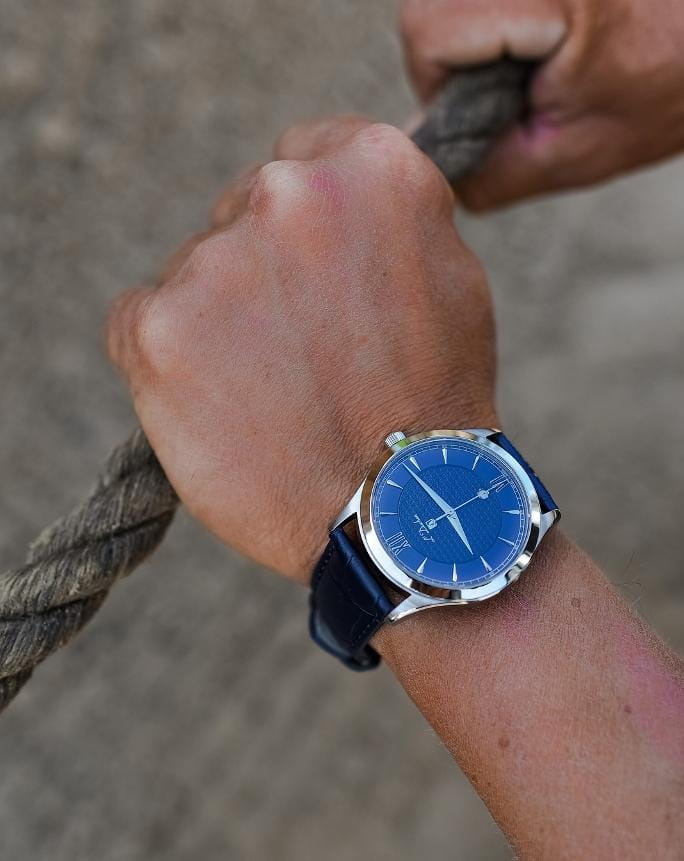 Мужские кварцевые часы L'Duchen из коллекции Carcassonne — это классический образец швейцарского мастерства и элегантного дизайна. Корпус круглой формы выполнен из нержавеющей стали 316L с комбинацией полированных и матовых поверхностей. Циферблат синего цвета защищён сапфировым стекломСапфировое стеклоПрочный и надёжный материал из кристалла сапфира синтетического происхождения, характеризующийся особой твёрдостью и устойчивостью к царапинам и повреждениям. с антибликовым покрытиемАнтибликовое покрытиеСлой оксида металла в 0,13-0,3 микрон, благодаря которому стекло часов не бликует и не отражает свет. Антибликовое покрытие уменьшает отражение света в 10 раз, обеспечивая отличную читаемость показателей циферблата., устойчивым к появлению микроцарапин. В центре циферблата — декоративный рисунок гильоше, выполненный в виде повторяющегося изображения дубового листа, символа бренда. Накладные метки и мечевидные стрелки обеспечивают отличную читаемость. Окошко даты расположено в положении 6 часов и выделено стальной окантовкой. Часы оснащены ремешком из натуральной кожи с контрастной прошивкой и застёжкой «бабочкой» с кнопкамиЗастёжка "бабочка"Такой вид застёжки дополняется предохранителями, помогающими избежать случайного раскрытия браслета. Обладают изящным исполнением. , украшенной логотипом бренда. Заводная головка также имеет рельефное тиснение в виде дубового листа. Водонепроницаемость 50 м позволяет использовать часы в повседневных условиях.