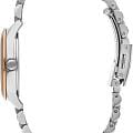 Женские наручные часы Lee Cooper LC07144.520 — это элегантная модель с утончённым дизайном. Корпус диаметром 33 мм выполнен из суперметалла, что придаёт часам изысканный вид. Перламутровый циферблат украшен изящными метками и стрелками, обеспечивая удобное считывание времени. Циферблат защищён минеральным стекломМинеральное стеклоМинеральное стекло представляет собой искусственно выращенный минерал кварца. Такое стекло отличается особой устойчивостью к повреждениям и царапинам. Уступает по некоторым качествам сапфировому стеклу., устойчивым к царапинам. Часы работают на кварцевом механизме, обеспечивая точность хода. Браслет из нержавеющей стали с раскладной застёжкойРаскладная застёжкаТакой тип застёжки используется только на браслетах из металла. Она никогда не раскрывается полностью, происходит разделение на 2 и более частей. Раскладывающая застёжка снизит вероятность потери часов к минимуму. гарантирует комфортное ношение и надёжную фиксацию на запястье. БезельБезельВнешний ободок, закрепляющий стекло. В спортивных часах так называется поворотное кольцо с делениями на циферблате, выполняет роль таймера – замеряет отрезки времени на шкале. Неподвижный безель – элемент декора. Однонаправленно вращающийся безель на дайверских часах позволяет фиксировать моменты погружения и выныривания на поверхность. с IP-покрытиемIP-покрытиеМетод ионного напыления. Демонстрирует повышенную устойчивость к истиранию, окислению и химическим веществам. Под воздействием высокого давления и температуры около 1500°C молекулы металла надёжно соединяются с частицами корпуса часов.. Водозащита 30 метров защищает часы от случайных брызг и дождя, делая их подходящими для повседневного использования.