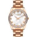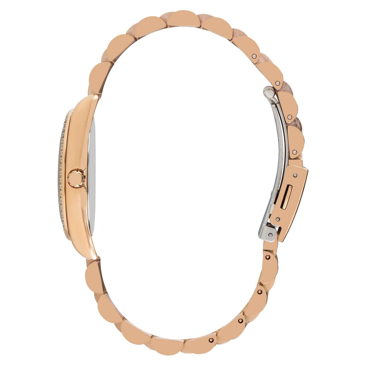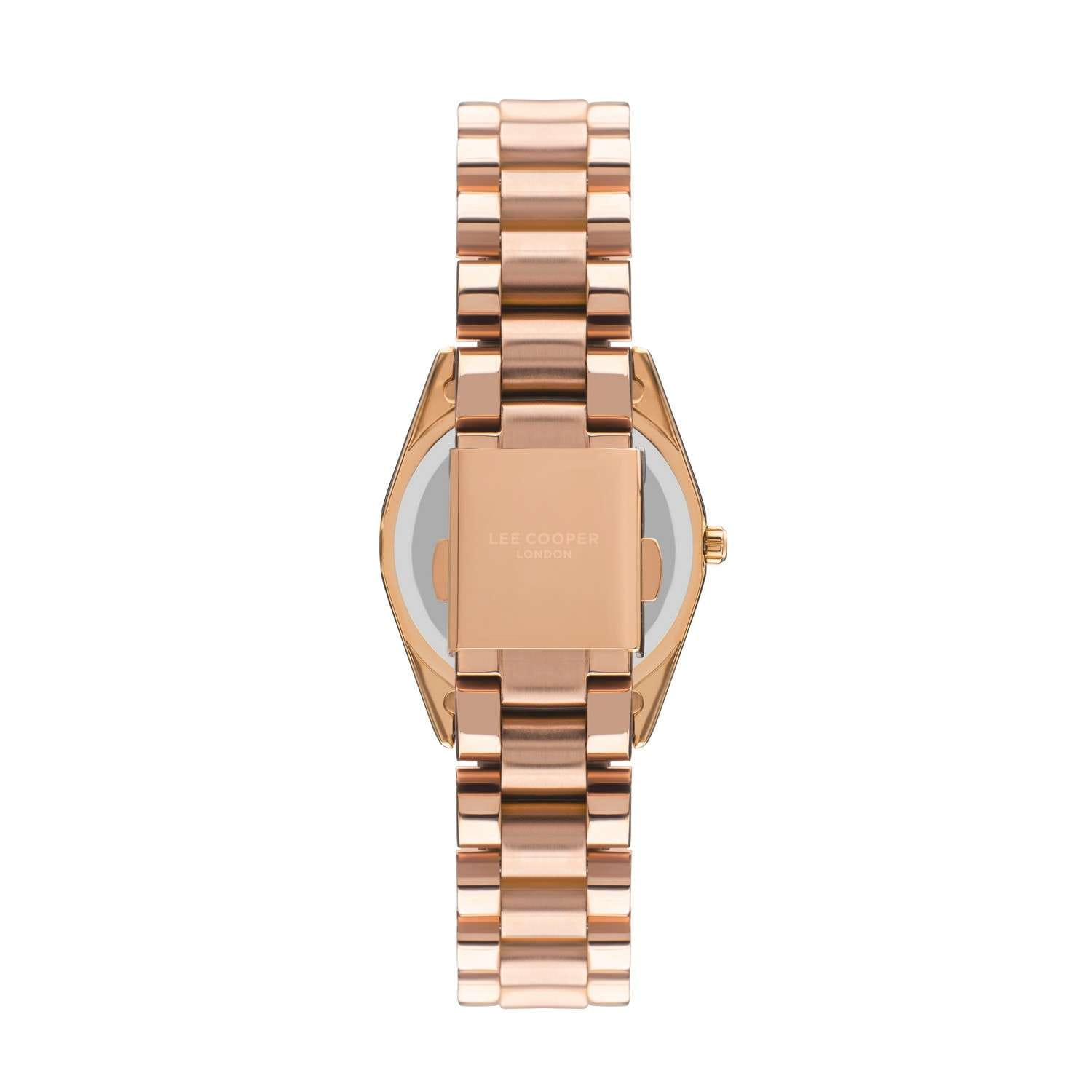 Женские наручные часы Lee Cooper LC07478.420 — это элегантная модель с утончённым дизайном. Корпус диаметром 34 мм выполнен из суперметалла с IP-покрытиемIP-покрытиеМетод ионного напыления. Демонстрирует повышенную устойчивость к истиранию, окислению и химическим веществам. Под воздействием высокого давления и температуры около 1500°C молекулы металла надёжно соединяются с частицами корпуса часов., что придаёт часам изысканный вид. Перламутровый циферблат украшен изящными стрелками и вставками из циркония в виде меток, обеспечивая удобное считывание времени. Циферблат защищён минеральным стекломМинеральное стеклоМинеральное стекло представляет собой искусственно выращенный минерал кварца. Такое стекло отличается особой устойчивостью к повреждениям и царапинам. Уступает по некоторым качествам сапфировому стеклу., устойчивым к царапинам. Часы работают на кварцевом механизме, обеспечивая точность хода. Браслет из нержавеющей стали с раскладной застёжкойРаскладная застёжкаТакой тип застёжки используется только на браслетах из металла. Она никогда не раскрывается полностью, происходит разделение на 2 и более частей. Раскладывающая застёжка снизит вероятность потери часов к минимуму. гарантирует комфортное ношение и надёжную фиксацию на запястье. Водозащита 30 метров защищает часы от случайных брызг и дождя, делая их подходящими для повседневного использования. БезельБезельВнешний ободок, закрепляющий стекло. В спортивных часах так называется поворотное кольцо с делениями на циферблате, выполняет роль таймера – замеряет отрезки времени на шкале. Неподвижный безель – элемент декора. Однонаправленно вращающийся безель на дайверских часах позволяет фиксировать моменты погружения и выныривания на поверхность. инкрустирован кристаллами. Стрелки покрыты люминесцентным покрытиемЛюминесцентное покрытиеПозволяет считывать показания времени в темноте. Производители наносят на стрелки, часовые индексы, безель или поверхность циферблата светонакопительный состав, дающий холодное свечение., обеспечивая удобное считывание показаний в условиях недостаточного освещения.