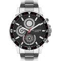 Мужские наручные часы Lee Cooper LC07636.350 оснащены кварцевым механизмом, обеспечивающий высокую точность хода и надежность. Корпус часов выполнен из суперметалла серебристого цвета, что делает их устойчивыми к внешним воздействиям и придает благородный вид. Элегантный безельБезельВнешний ободок, закрепляющий стекло. В спортивных часах так называется поворотное кольцо с делениями на циферблате, выполняет роль таймера – замеряет отрезки времени на шкале. Неподвижный безель – элемент декора. Однонаправленно вращающийся безель на дайверских часах позволяет фиксировать моменты погружения и выныривания на поверхность. с IP-покрытиемIP-покрытиеМетод ионного напыления. Демонстрирует повышенную устойчивость к истиранию, окислению и химическим веществам. Под воздействием высокого давления и температуры около 1500°C молекулы металла надёжно соединяются с частицами корпуса часов.. Циферблат черного цвета украшен классическими стрелками с люминесцентным покрытиемЛюминесцентное покрытиеПозволяет считывать показания времени в темноте. Производители наносят на стрелки, часовые индексы, безель или поверхность циферблата светонакопительный состав, дающий холодное свечение., гармонично дополняющим общий дизайн модели. Для защиты циферблата используется минеральное стеклоМинеральное стеклоМинеральное стекло представляет собой искусственно выращенный минерал кварца. Такое стекло отличается особой устойчивостью к повреждениям и царапинам. Уступает по некоторым качествам сапфировому стеклу., устойчивое к царапинам и механическим повреждениям. Корпус имеет круглую форму диаметром 45 мм, что делает часы заметными и подходящими. Браслет из стали оснащен раскладной застёжкойРаскладная застёжкаТакой тип застёжки используется только на браслетах из металла. Она никогда не раскрывается полностью, происходит разделение на 2 и более частей. Раскладывающая застёжка снизит вероятность потери часов к минимуму., обеспечивающим комфортное и безопасное ношение. Вынесенный циферблат с 24-х часовым указателем времени, индикацией даты и дня недели. Часы обладают водонепроницаемостью до 50 метров (5 АТМ), что позволяет использовать их в повседневной жизни, включая контакт с водой при мытье рук или дожде. Эти часы станут идеальным выбором для мужчин, ценящих стиль, качество и функциональность.