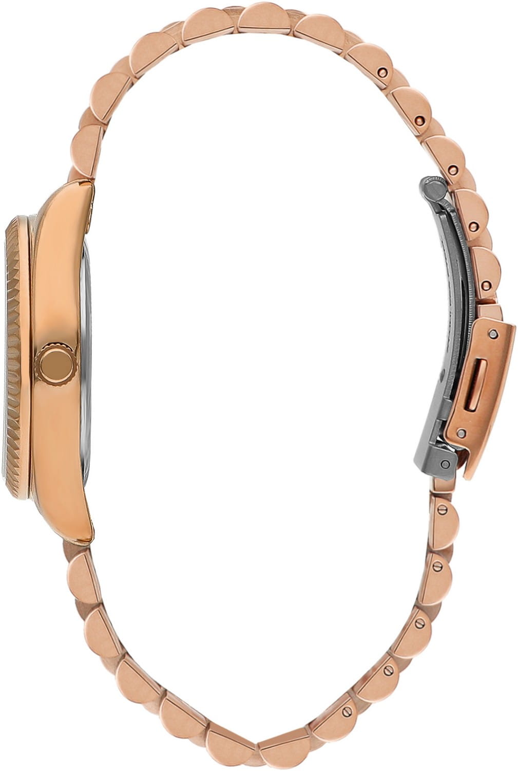 Женские наручные часы Lee Cooper LC07681.430 — это элегантная модель с утончённым дизайном. Корпус диаметром 32 мм выполнен из суперметалла с IP-покрытиемIP-покрытиеМетод ионного напыления. Демонстрирует повышенную устойчивость к истиранию, окислению и химическим веществам. Под воздействием высокого давления и температуры около 1500°C молекулы металла надёжно соединяются с частицами корпуса часов., что придаёт часам изысканный вид. Серебристый циферблат украшен изящными вставками из циркония в виде меток времени и стрелками, обеспечивая удобное считывание времени. Циферблат защищён минеральным стекломМинеральное стеклоМинеральное стекло представляет собой искусственно выращенный минерал кварца. Такое стекло отличается особой устойчивостью к повреждениям и царапинам. Уступает по некоторым качествам сапфировому стеклу., устойчивым к царапинам. Часы работают на кварцевом механизме, обеспечивая точность хода. Браслет из нержавеющей стали с IP-покрытиемIP-покрытиеМетод ионного напыления. Демонстрирует повышенную устойчивость к истиранию, окислению и химическим веществам. Под воздействием высокого давления и температуры около 1500°C молекулы металла надёжно соединяются с частицами корпуса часов. с раскладной застёжкойРаскладная застёжкаТакой тип застёжки используется только на браслетах из металла. Она никогда не раскрывается полностью, происходит разделение на 2 и более частей. Раскладывающая застёжка снизит вероятность потери часов к минимуму. гарантирует комфортное ношение и надёжную фиксацию на запястье. Стрелки с люминесцентным покрытиемЛюминесцентное покрытиеПозволяет считывать показания времени в темноте. Производители наносят на стрелки, часовые индексы, безель или поверхность циферблата светонакопительный состав, дающий холодное свечение., обеспечивающим хорошую читаемость в темноте. Водозащита 30 метров защищает часы от случайных брызг и дождя, делая их подходящими для повседневного использования.