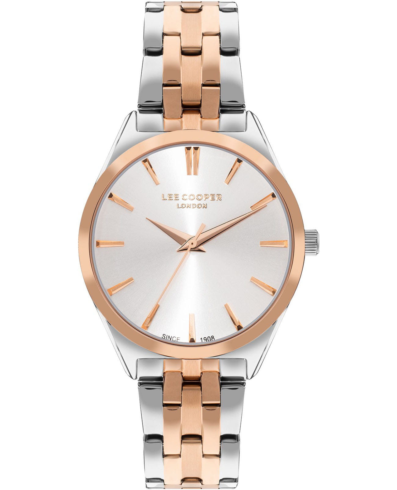 Женские часы Lee Cooper LC07833.530 — это стильное сочетание элегантности и современного дизайна. Изысканный круглый корпус диаметром 34 мм выполнен из суперметалла с неподвижным безелемБезельВнешний ободок, закрепляющий стекло. В спортивных часах так называется поворотное кольцо с делениями на циферблате, выполняет роль таймера – замеряет отрезки времени на шкале. Неподвижный безель – элемент декора. Однонаправленно вращающийся безель на дайверских часах позволяет фиксировать моменты погружения и выныривания на поверхность. с IP-покрытиемIP-покрытиеМетод ионного напыления. Демонстрирует повышенную устойчивость к истиранию, окислению и химическим веществам. Под воздействием высокого давления и температуры около 1500°C молекулы металла надёжно соединяются с частицами корпуса часов. золотого цвета, что придает модели особый блеск. Серебристый циферблат защищен минеральным стекломМинеральное стеклоМинеральное стекло представляет собой искусственно выращенный минерал кварца. Такое стекло отличается особой устойчивостью к повреждениям и царапинам. Уступает по некоторым качествам сапфировому стеклу., обеспечивающим устойчивость к царапинам. Метки в виде лаконичных штрихов. Часы оснащены надежным кварцевым механизмом, а изящный стальной браслет с частичным IP-покрытиемIP-покрытиеМетод ионного напыления. Демонстрирует повышенную устойчивость к истиранию, окислению и химическим веществам. Под воздействием высокого давления и температуры около 1500°C молекулы металла надёжно соединяются с частицами корпуса часов. на раскладной застёжкеРаскладная застёжкаТакой тип застёжки используется только на браслетах из металла. Она никогда не раскрывается полностью, происходит разделение на 2 и более частей. Раскладывающая застёжка снизит вероятность потери часов к минимуму. гарантирует комфортную посадку на запястье. Водозащита 30 метров защищает модель от случайных брызг и дождя. Lee Cooper — отличный выбор для тех, кто ценит утонченность и качество.