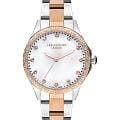 Женские наручные часы Lee Cooper LC07840.520 — это элегантная модель с утончённым дизайном. Корпус диаметром 35 мм выполнен из суперметалла с безелемБезельВнешний ободок, закрепляющий стекло. В спортивных часах так называется поворотное кольцо с делениями на циферблате, выполняет роль таймера – замеряет отрезки времени на шкале. Неподвижный безель – элемент декора. Однонаправленно вращающийся безель на дайверских часах позволяет фиксировать моменты погружения и выныривания на поверхность. с IP-покрытиемIP-покрытиеМетод ионного напыления. Демонстрирует повышенную устойчивость к истиранию, окислению и химическим веществам. Под воздействием высокого давления и температуры около 1500°C молекулы металла надёжно соединяются с частицами корпуса часов., что придаёт часам изысканный вид. Перламутровый циферблат украшен изящными вставками из циркония в виде меток времени и стрелками, обеспечивая удобное считывание времени. Циферблат защищён минеральным стекломМинеральное стеклоМинеральное стекло представляет собой искусственно выращенный минерал кварца. Такое стекло отличается особой устойчивостью к повреждениям и царапинам. Уступает по некоторым качествам сапфировому стеклу., устойчивым к царапинам. Часы работают на кварцевом механизме, обеспечивая точность хода. Часовая и минутная стрелки с люминесцентным покрытиемЛюминесцентное покрытиеПозволяет считывать показания времени в темноте. Производители наносят на стрелки, часовые индексы, безель или поверхность циферблата светонакопительный состав, дающий холодное свечение.. Браслет из нержавеющей стали с частичным IP-покрытиемIP-покрытиеМетод ионного напыления. Демонстрирует повышенную устойчивость к истиранию, окислению и химическим веществам. Под воздействием высокого давления и температуры около 1500°C молекулы металла надёжно соединяются с частицами корпуса часов. с раскладной застёжкойРаскладная застёжкаТакой тип застёжки используется только на браслетах из металла. Она никогда не раскрывается полностью, происходит разделение на 2 и более частей. Раскладывающая застёжка снизит вероятность потери часов к минимуму. гарантирует комфортное ношение и надёжную фиксацию на запястье. Водозащита 30 метров защищает часы от случайных брызг и дождя, делая их подходящими для повседневного использования.