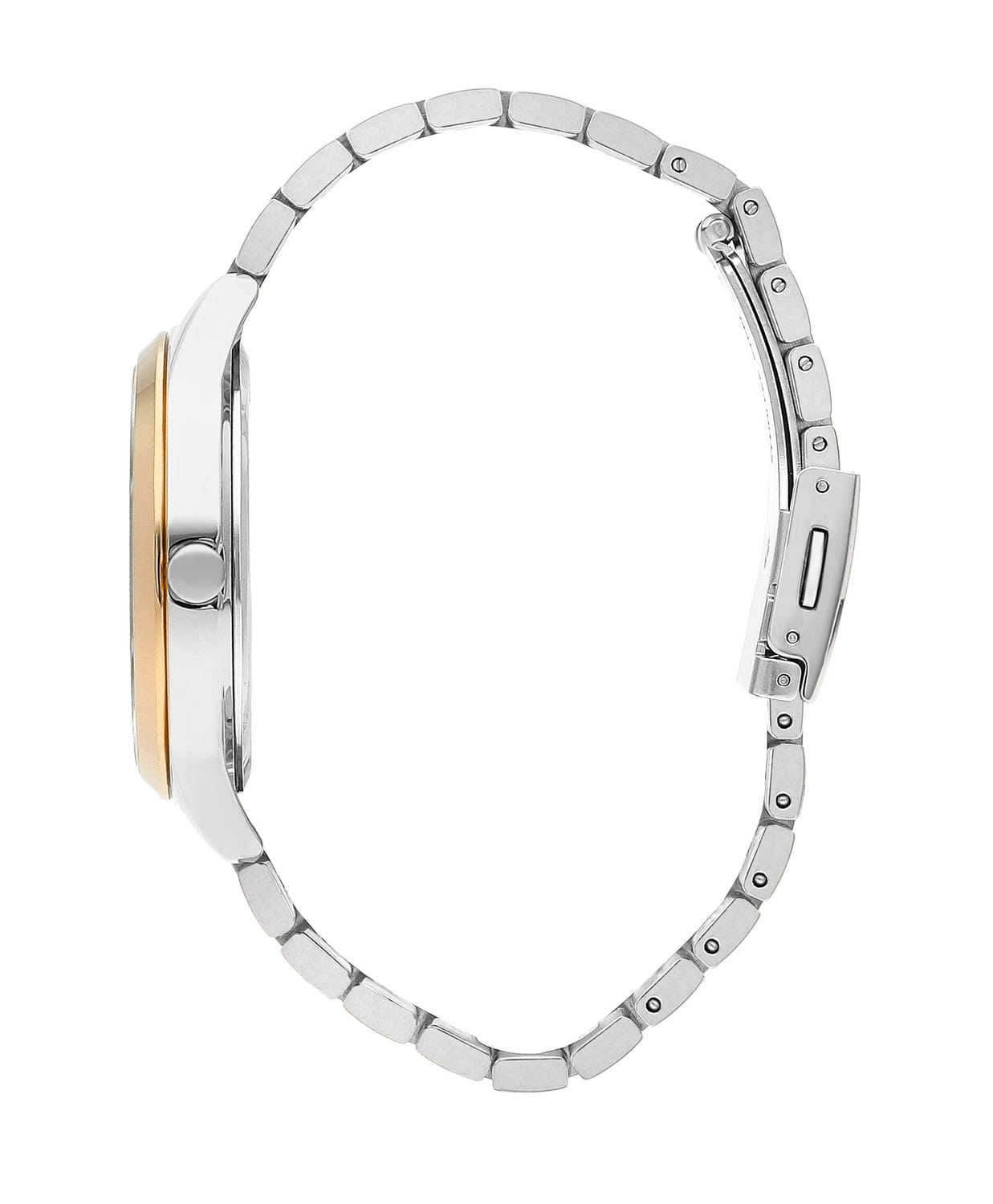 Женские часы Lee Cooper LC07865.230 — это стильное сочетание элегантности и современного дизайна. Круглый корпус диаметром 38 мм выполнен из суперметалла с безелемБезельВнешний ободок, закрепляющий стекло. В спортивных часах так называется поворотное кольцо с делениями на циферблате, выполняет роль таймера – замеряет отрезки времени на шкале. Неподвижный безель – элемент декора. Однонаправленно вращающийся безель на дайверских часах позволяет фиксировать моменты погружения и выныривания на поверхность. с IP-покрытиемIP-покрытиеМетод ионного напыления. Демонстрирует повышенную устойчивость к истиранию, окислению и химическим веществам. Под воздействием высокого давления и температуры около 1500°C молекулы металла надёжно соединяются с частицами корпуса часов. золотого цвета, придающий модели особый блеск. Серебристый циферблат защищен минеральным стекломМинеральное стеклоМинеральное стекло представляет собой искусственно выращенный минерал кварца. Такое стекло отличается особой устойчивостью к повреждениям и царапинам. Уступает по некоторым качествам сапфировому стеклу., обеспечивающим устойчивость к царапинам. Часы оснащены надежным кварцевым механизмом, а стальной браслет с частичным IP-покрытиемIP-покрытиеМетод ионного напыления. Демонстрирует повышенную устойчивость к истиранию, окислению и химическим веществам. Под воздействием высокого давления и температуры около 1500°C молекулы металла надёжно соединяются с частицами корпуса часов. на раскладной застёжкеРаскладная застёжкаТакой тип застёжки используется только на браслетах из металла. Она никогда не раскрывается полностью, происходит разделение на 2 и более частей. Раскладывающая застёжка снизит вероятность потери часов к минимуму. гарантирует комфортную посадку на запястье. Мультифункциональная модель с индикацией даты, дня недели, с дополнительным 24-х часовым индикатором. Водозащита 30 метров защищает модель от случайных брызг и дождя. Lee Cooper — отличный выбор для тех, кто ценит утонченность и качество.