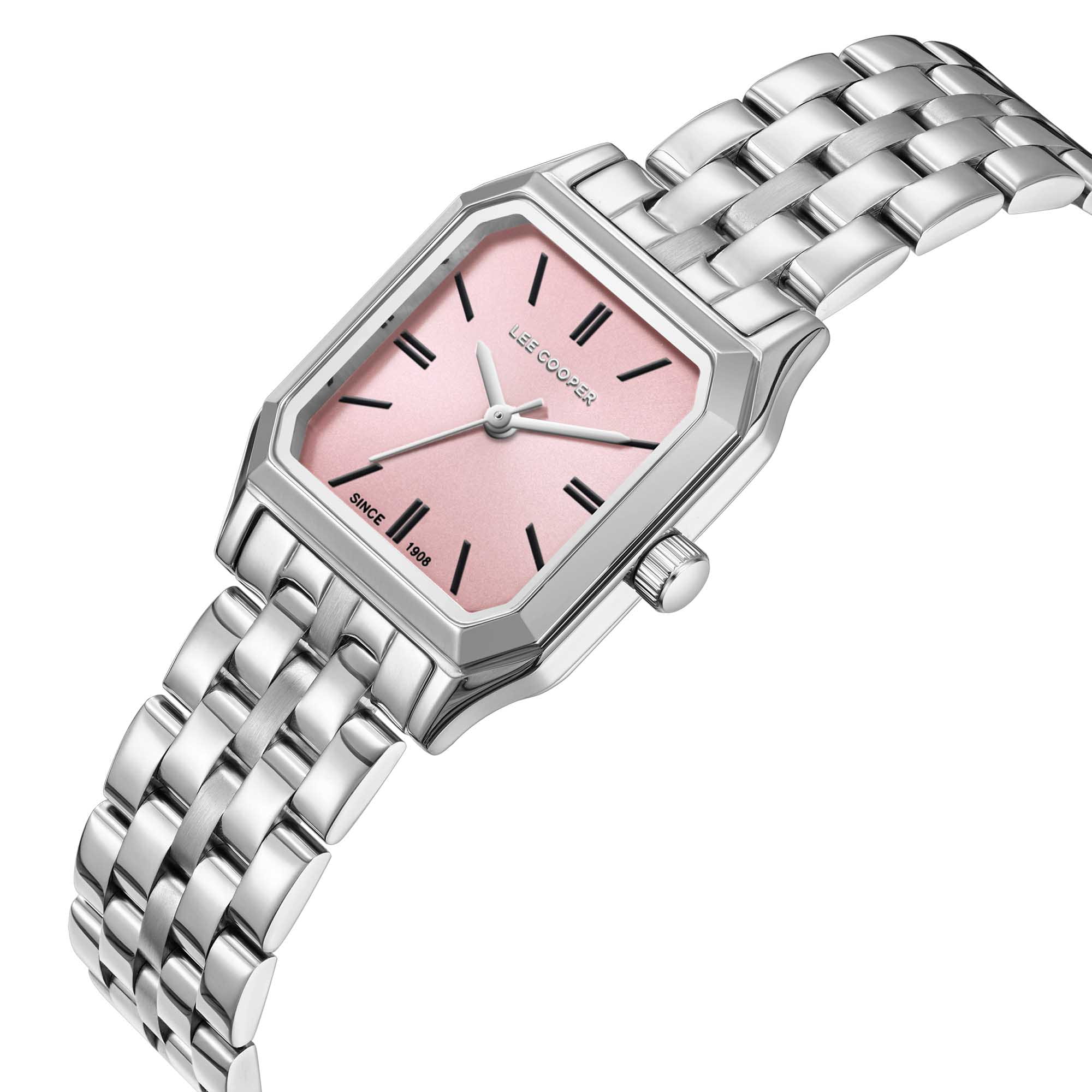 Женские наручные часы Lee Cooper LC08120.380 — это изысканная модель, сочетающая элегантный дизайн и практичность. Корпус выполнен из нержавеющей стали, придавая часам уникальный и утончённый вид. Розовый циферблат с метками в виде штрихов добавляет свежий и стильный акцент, делая часы привлекательными для различных случаев. Модель оснащена надёжным кварцевым механизмом, обеспечивающим точность и долговечность. Минеральное стеклоМинеральное стеклоМинеральное стекло представляет собой искусственно выращенный минерал кварца. Такое стекло отличается особой устойчивостью к повреждениям и царапинам. Уступает по некоторым качествам сапфировому стеклу. защищает циферблат от повреждений и царапин, сохраняя его презентабельный вид. Водонепроницаемость 50 метров защищает часы от случайных брызг, что делает их подходящими для повседневных ситуаций, таких как мытьё рук или прогулки под лёгким дождём. Раскладная застёжкаРаскладная застёжкаТакой тип застёжки используется только на браслетах из металла. Она никогда не раскрывается полностью, происходит разделение на 2 и более частей. Раскладывающая застёжка снизит вероятность потери часов к минимуму. обеспечивает удобную посадку и надёжность при ношении. В целом, эти часы являются отличным выбором для тех, кто ищет аксессуар, объединяющий классический стиль, уникальное цветовое решение и функциональность. Их гармоничное сочетание серебристых оттенков с элегантным перламутровым циферблатом и качественным механизмом делает их идеальным дополнением к любому гардеробу — от официального до повседневного.