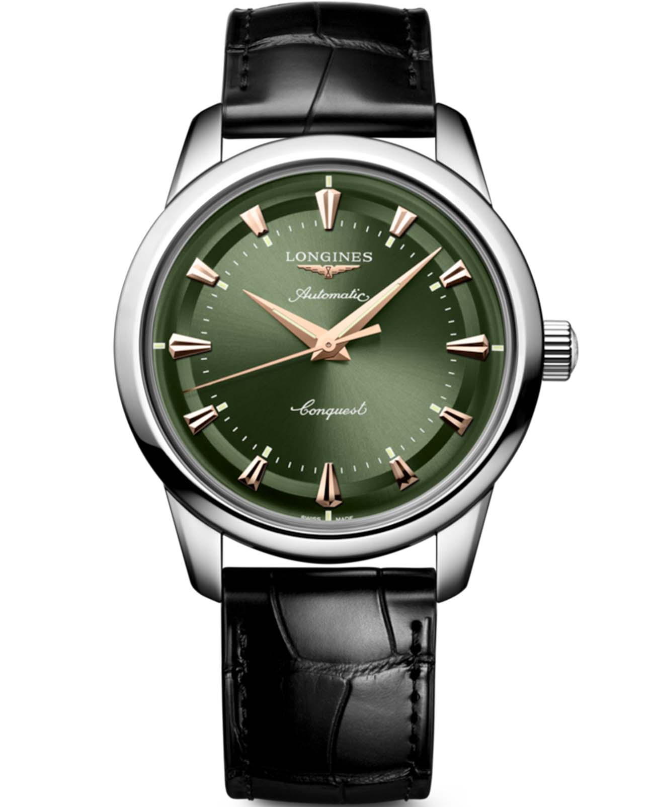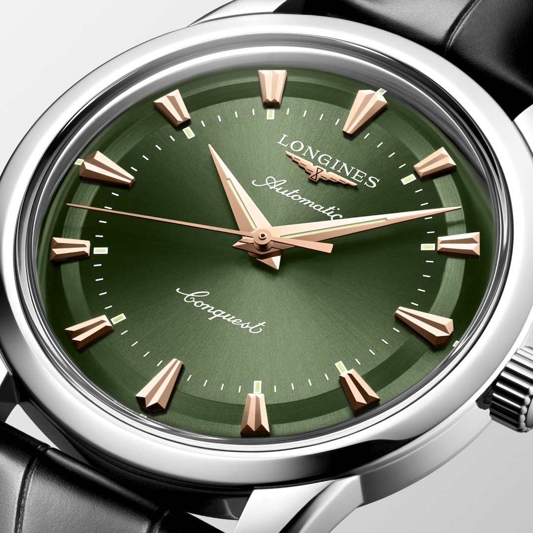 Longines Conquest Heritage L1.650.4.02.2 — это воплощение классической элегантности и швейцарского совершенства, объединяющее в себе богатое наследие марки и современные технологии. Корпус часов выполнен из высококачественной нержавеющей стали диаметром 40 мм и украшен оригинальным медальоном из золота 18 карат с изображением рыбы на задней крышке, что подчеркивает исключительность этой модели. Зеленый циферблат с полированной поверхностью, украшенный изящными накладными индексами в виде штрихов, создает благородный акцент и идеально сочетается с кожаным ремешком глубокого черного оттенка, дополненным надежной стальной застежкой. Также на циферблате располагаются полированные стрелки с люминесцентным покрытиемЛюминесцентное покрытиеПозволяет считывать показания времени в темноте. Производители наносят на стрелки, часовые индексы, безель или поверхность циферблата светонакопительный состав, дающий холодное свечение. Swiss Super-LumiNova для отличной читаемости в любое время суток. Механизм с автоподзаводом калибра L888 обеспечивает точность хода и запас хода до 72 часов, а устойчивость к магнитным полям гарантирует стабильную работу даже в насыщенных электромагнитных условиях. Сапфировое стеклоСапфировое стеклоПрочный и надёжный материал из кристалла сапфира синтетического происхождения, характеризующийся особой твёрдостью и устойчивостью к царапинам и повреждениям. с двусторонним многослойным антибликовым покрытием надежно защищает циферблат от царапин и бликов, сохраняя безупречный внешний вид на долгие годы. Часы выдерживают давление до 5 бар (50 метров), что позволяет не снимать их во время мытья рук или прогулок под дождем. Завинчивающаяся заводная головка и продуманная конструкция корпуса подчеркивают высокий уровень исполнения каждой детали.