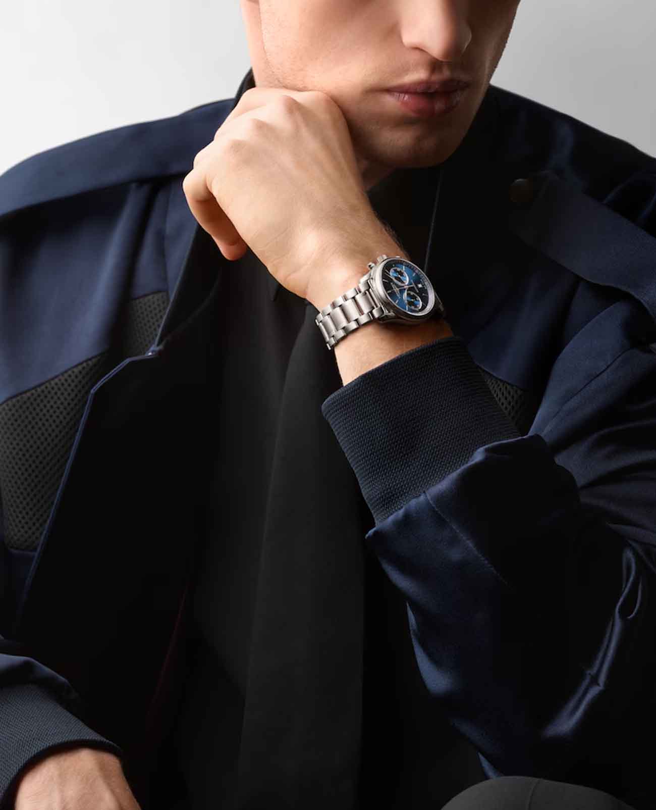 Одной из ключевых особенностей данной модели является сапфировое стеклоСапфировое стеклоПрочный и надёжный материал из кристалла сапфира синтетического происхождения, характеризующийся особой твёрдостью и устойчивостью к царапинам и повреждениям. с антибликовым покрытием, которое эффективно защищает циферблат от мелких механических повреждений и обеспечивает отличную видимость в любых условиях освещения. Сапфировый кристалл славится своей высокой прочностью и устойчивостью к царапинам, что гарантирует долгие годы безупречного функционирования часов без потери их первозданного внешнего вида.