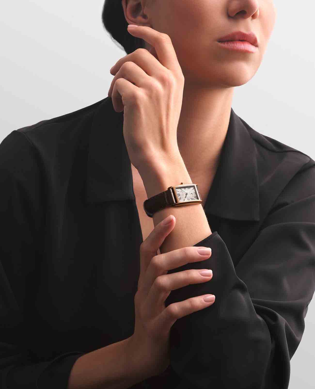 . Метки в виде римских цифр. Малая секундная стрелка в положении 6 часов. Класс водозащиты: 30 метров, позволит защитить корпус от случайных брызг или капель дождя. Кожаный ремешок на стандартной застежке.