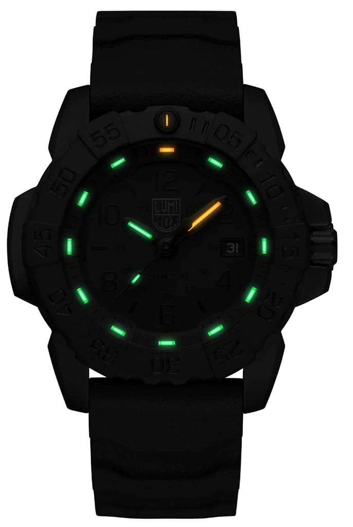 Швейцарские кварцевые часы Luminox XS.3251.BO.CB идеально сочетают в себе современный стиль и надежность. Благодаря корпусу из нержавеющей стали 316L с черным PVDPVDУльтратонкое покрытие наносится в технике вакуумного напыления, сочетает в себе нитрид титана особой прочности со слоем золота или оксида хрома. Несёт в себе декоративную или защитную функцию. покрытием, они прочные и стильные. Черный циферблат подчеркивает спортивный дизайн модели, а полиуретановый ремешок с классической застежкой обеспечивает комфорт при носке. Часы обладают водозащитой на глубине до 200 метров, что делает их идеальным выбором для любителей водных видов спорта. LLTLLTLLT — это автономный механизм подсветки, основанный на использовании микроскопических газонаполненных элементов. Специальные герметичные капсулы из боросиликатного стекла, интегрированные в циферблат, генерируют свечение без необходимости подключения к внешним источникам энергии. Для их работы не требуется ни дополнительный свет, ни механическое воздействие (например, нажатие кнопки). Свечение возникает благодаря химическому процессу: реакция между тритием, заключенным в капсулах, и люминофорным покрытием создает стабильное автономное освещение. Технология обеспечивает энергетическую независимость и долговечность подсветки.-подсветка гарантирует отличную видимость в темное время суток, а сапфировое стеклоСапфировое стеклоПрочный и надёжный материал из кристалла сапфира синтетического происхождения, характеризующийся особой твёрдостью и устойчивостью к царапинам и повреждениям. с антибликовым покрытиемАнтибликовое покрытиеСлой оксида металла в 0,13-0,3 микрон, благодаря которому стекло часов не бликует и не отражает свет. Антибликовое покрытие уменьшает отражение света в 10 раз, обеспечивая отличную читаемость показателей циферблата. защищает от царапин и обеспечивает четкость отображения. Модель оснащена функцией календаря с окошком даты, дополненным увеличительным стеклом для удобства использования. Часы поддерживают 12-ти и 24-х часовой формат времени, а вращающийся в одном направлении безельБезельВнешний ободок, закрепляющий стекло. В спортивных часах так называется поворотное кольцо с делениями на циферблате, выполняет роль таймера – замеряет отрезки времени на шкале. Неподвижный безель – элемент декора. Однонаправленно вращающийся безель на дайверских часах позволяет фиксировать моменты погружения и выныривания на поверхность. позволяет отслеживать время погружения или других активностей. Задняя крышка и заводная головка выполнены из стали, что добавляет дополнительную прочность конструкции. Заводная головка с защитой предотвращает случайное изменение времени. Благодаря диаметру в 45 мм и толщине 13 мм, эти часы обладают внушительным и привлекательным внешним видом.