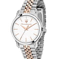Женские американские часы Maserati R8853118520, кварцевый механизм с высокой точностью. Минеральное стеклоМинеральное стеклоМинеральное стекло представляет собой искусственно выращенный минерал кварца. Такое стекло отличается особой устойчивостью к повреждениям и царапинам. Уступает по некоторым качествам сапфировому стеклу. устойчивое к мелким механическим повреждениям. Класс водозащиты: 100 метров, позволит плавать, нырять и заниматься другими водными видами спорта. Корпус часов изготовлен из стали. Браслет из стали с частичным IP-покрытиемIP-покрытиеМетод ионного напыления. Демонстрирует повышенную устойчивость к истиранию, окислению и химическим веществам. Под воздействием высокого давления и температуры около 1500°C молекулы металла надёжно соединяются с частицами корпуса часов..