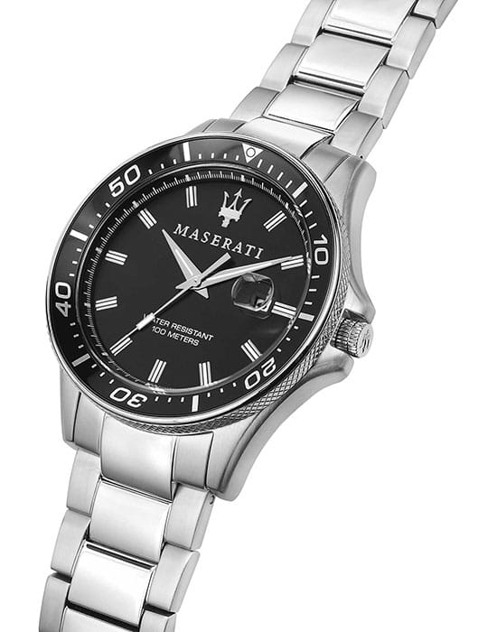 Мужские американские часы с календарём Maserati SFIDA R8853140002, кварцевый механизм с высокой точностью. Класс водозащиты: 100 метров, позволит плавать, нырять и заниматься другими водными видами спорта. Корпус часов изготовлен из стали, цвета.